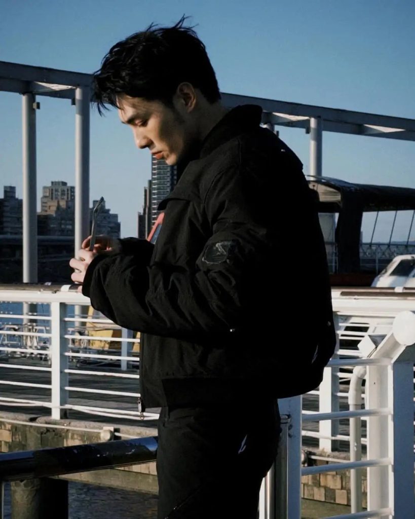 从网友曝光的照片可以看到,身着一身黑服饰的黄伟晋,戴着耳机在座位上玩手机,在人群中显得格外显眼,不知道的还以为是素人帅哥。