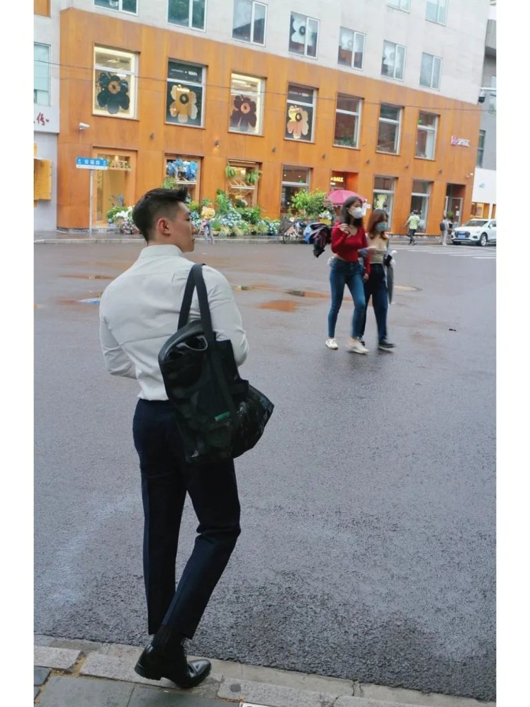 #正装皮鞋&不拘一格#,帆哥告诉你,即使是身处严谨的商务环境,身穿藏青色西裤搭配正装皮鞋,也依然可以保持个性与活力。瞧瞧他中午健身时的独特穿搭,上衣换掉,西裤皮鞋却依然在线,这就是现代都市年轻人快节奏生活的真实写照,看似滑稽却又无比真实,引人会心一笑!健身房,下午茶,无缝对接!