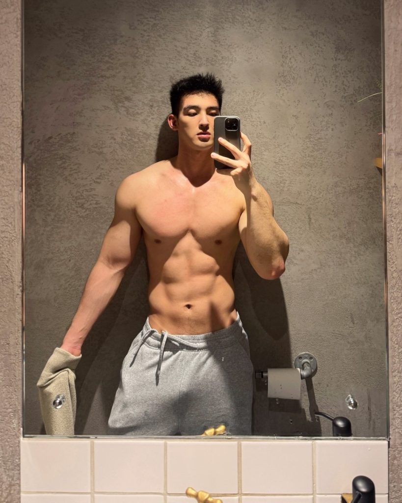 说实话,看到毛若懿的第一眼,我就已经在脑海里和他谈了三天恋爱。试问,谁不想有个186cm的冷白皮男友,颜值在线,身材炸裂,还能陪你一起健身撩汗?上班时他是衣冠楚楚的精英,下班后他在瑜伽垫上给你展示背肌蝴蝶,晚上还能靠着那宽厚的肩膀看电影……这画面,简直是理想生活的天花板啊!佑璨我的审美已经被他彻底拿捏了,这样的男人,真的就是行走的荷尔蒙炸弹,随手一拍就是壁纸级别,生活里有他,估计每天都能元气满满吧?