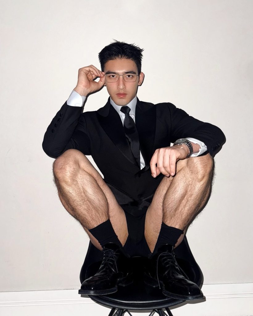 其实毛若懿这小哥哥的经历也挺励志的。早年他是个男团成员,作为歌手还出道过,舞台上的他穿笔挺西装,象征着秩序和少年感。可惜星途不顺,大环境还没像现在这么卷的时候,他就已经转行拍性感杂志了。经常刷帅哥的宝宝们对他肯定不陌生,毕竟那时候的他就已经是颜值圈的扛把子。如今摇身一变,成了健身博主,褪去偶像包袱的他,性感尺度更大胆,风格更多元。西装包裹下的欲望,和健身房里挥汗如雨的野性,两种画风无缝切换,充满了让人遐想的张力。