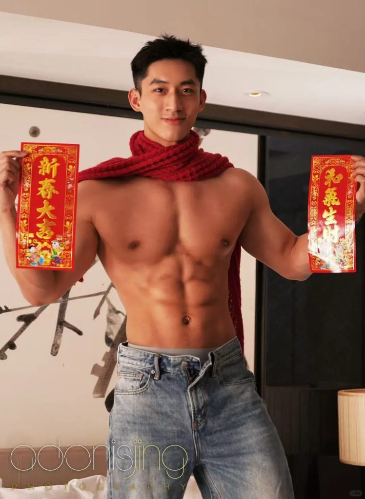 本来是拍举哑铃的年味创意照,这哥嫌道具太轻,直接 单手托起现场摄影师(不是刘京hhh)。绷紧的背肌把丝绸唐装顶出浮雕效果,流着汗的喉结随着呼吸上下滑动…在场工作人员集体瞳孔地震!刘京老师边拍边感叹:"这肌肉量,相机都要爆内存了!"