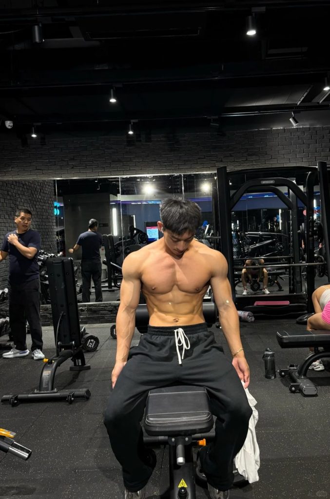 别以为他只是块头大,健身房里的表现更是炸裂!187cm的个子做起引体向上像猎豹腾跃,背阔肌展开能停直升机。有次演示绳索夹胸,运动背心被撑出裂缝的瞬间,弹幕直接炸成跨年倒计时: