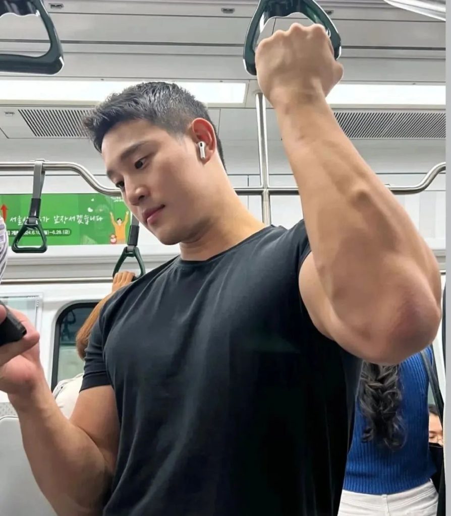 这位地铁上的小哥叫@hyuk_space,是韩国的肌肉网红。原来他的粗不止是手臂,看看他饱满的大胸肌,网友们直呼爱了爱了