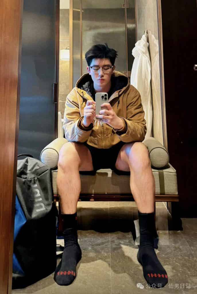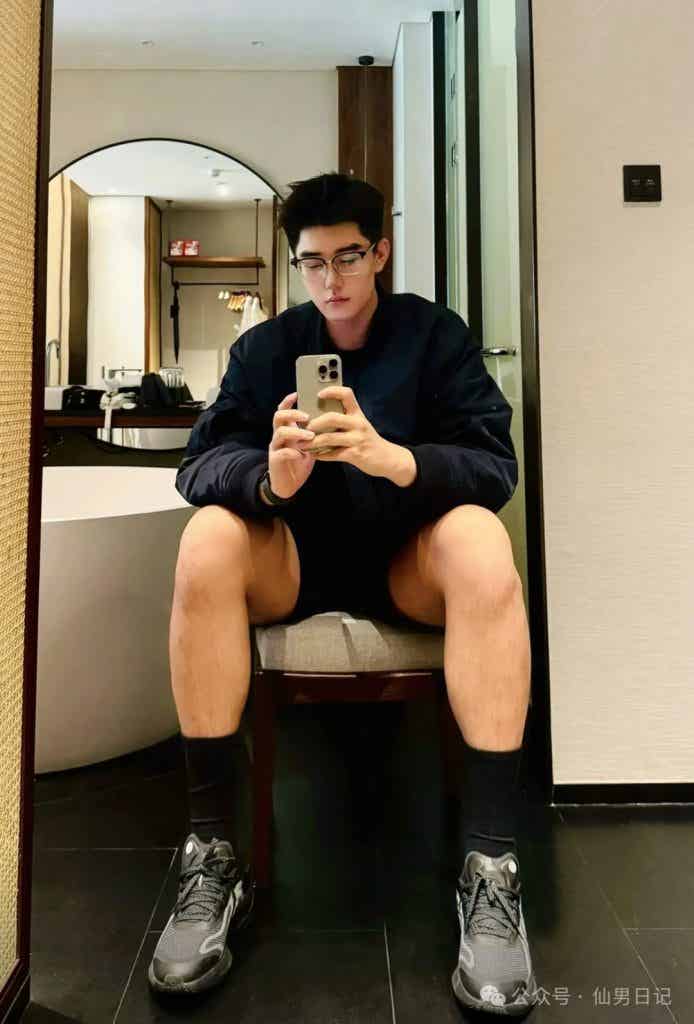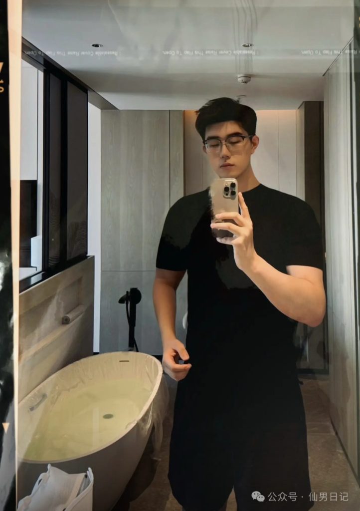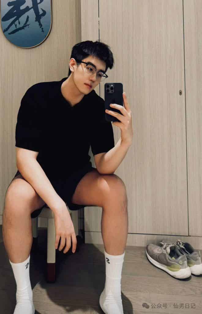 hello宝宝们!每天晚上8点来仙男日记看帅哥啦~ 身高192cm、宽肩窄腰配刀削下颌线,当小哥哥穿着宽松卫衣在卫生间里自拍的时候,没人料到这段居家视频会引发全网“人夫感”地震。 丝框眼镜搭配这张精致的帅脸,斯文败类的气质溢出屏幕,明明什么都没露,但我仿佛已经看穿了他…… 小哥哥照片已经发布,就被网友们疯狂寻找,sir也是第一时间找到了ID@L08i的小哥哥。 如果说身高是视觉核弹,那么小哥哥的「黑袜哲学」堪称精准狙击! 健身后的浴室对镜拍,黑色棉袜裹住44码脚掌,汗湿的袜口卡在凸起的踝骨,水珠悬在蜷曲腿毛间摇摇欲坠