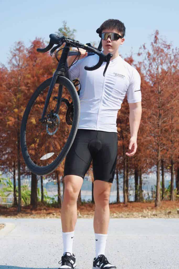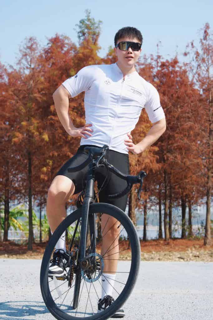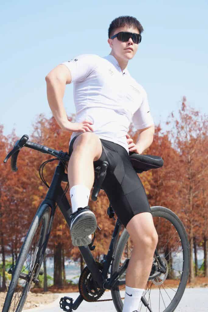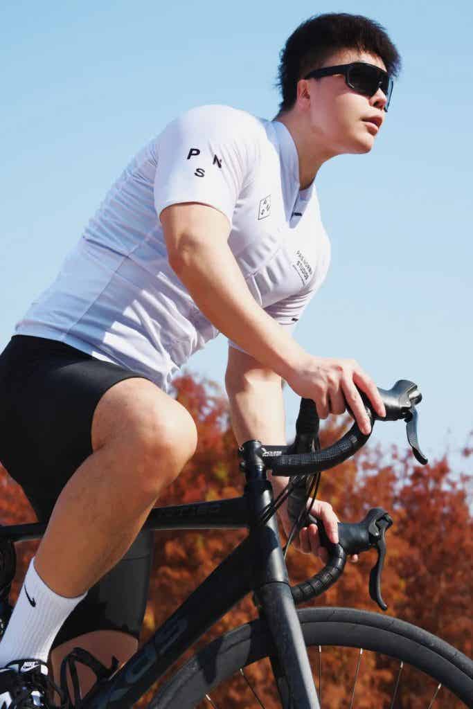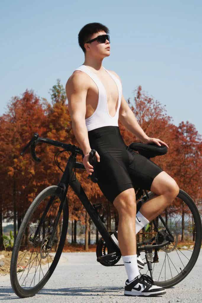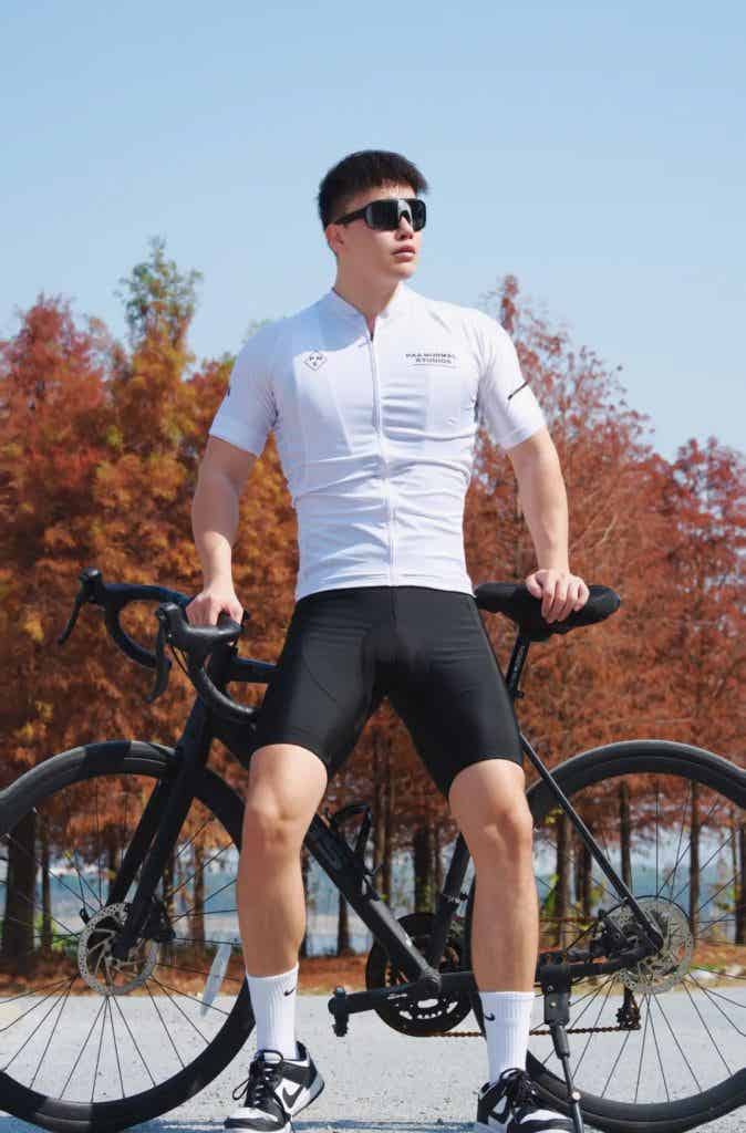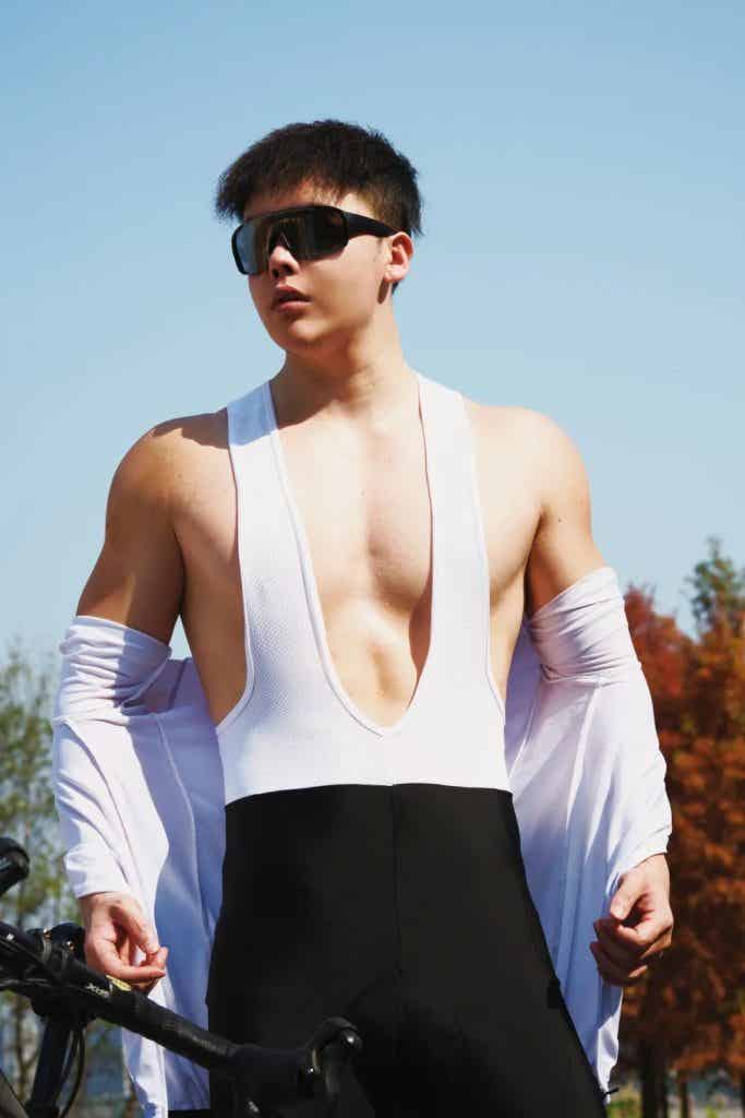 公园里偶遇白色骑行服小哥,脱衣露出肌肉太诱人了!(白色骑行服戴什么颜色头盔)