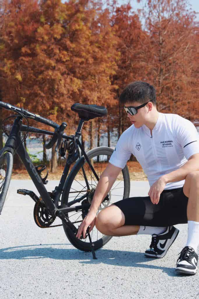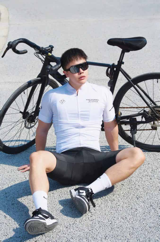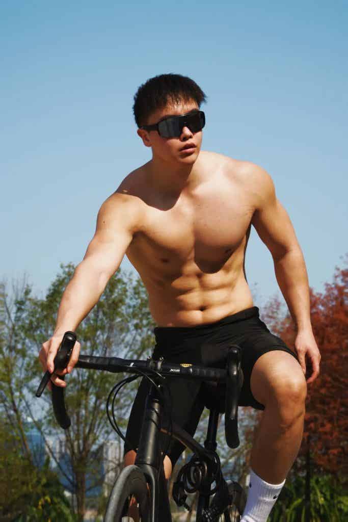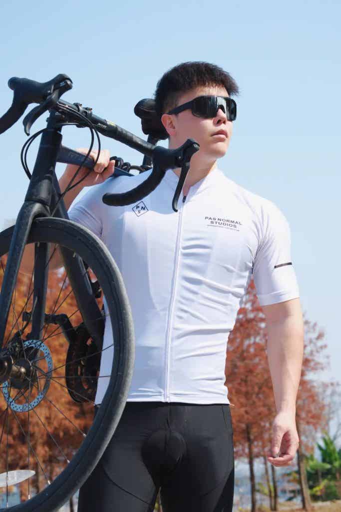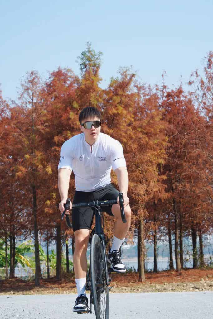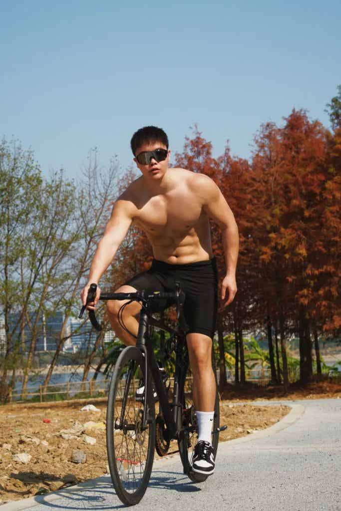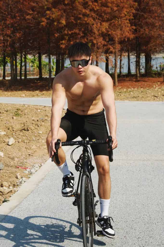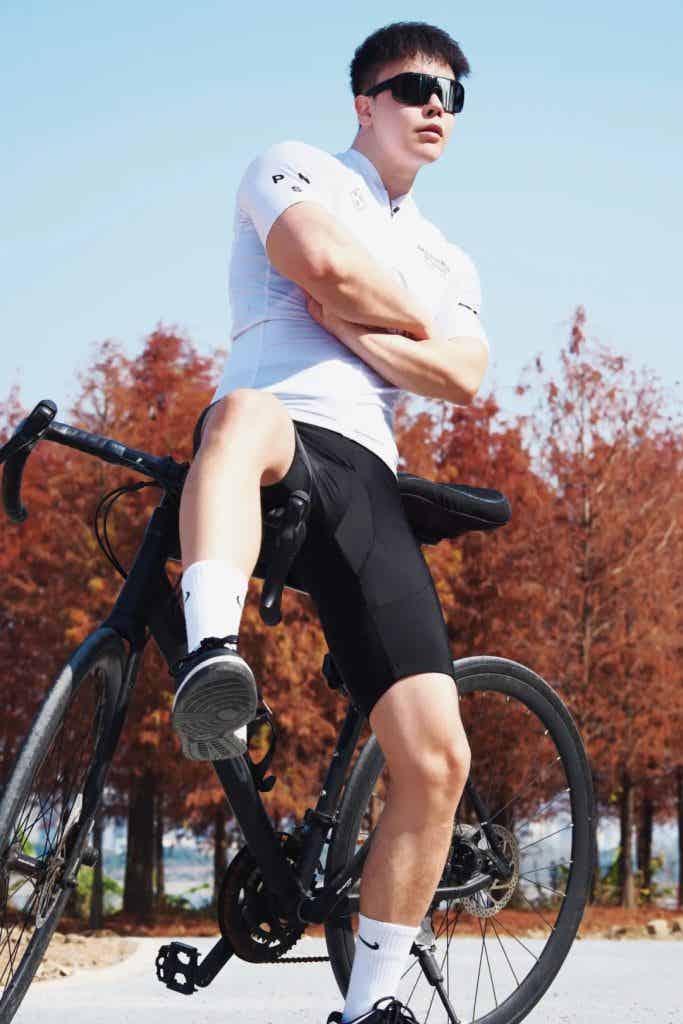 公园里偶遇白色骑行服小哥,脱衣露出肌肉太诱人了!(白色骑行服戴什么颜色头盔)