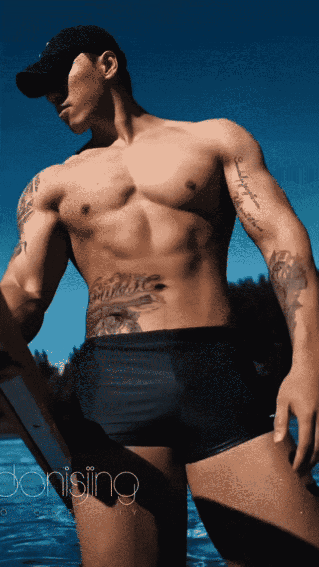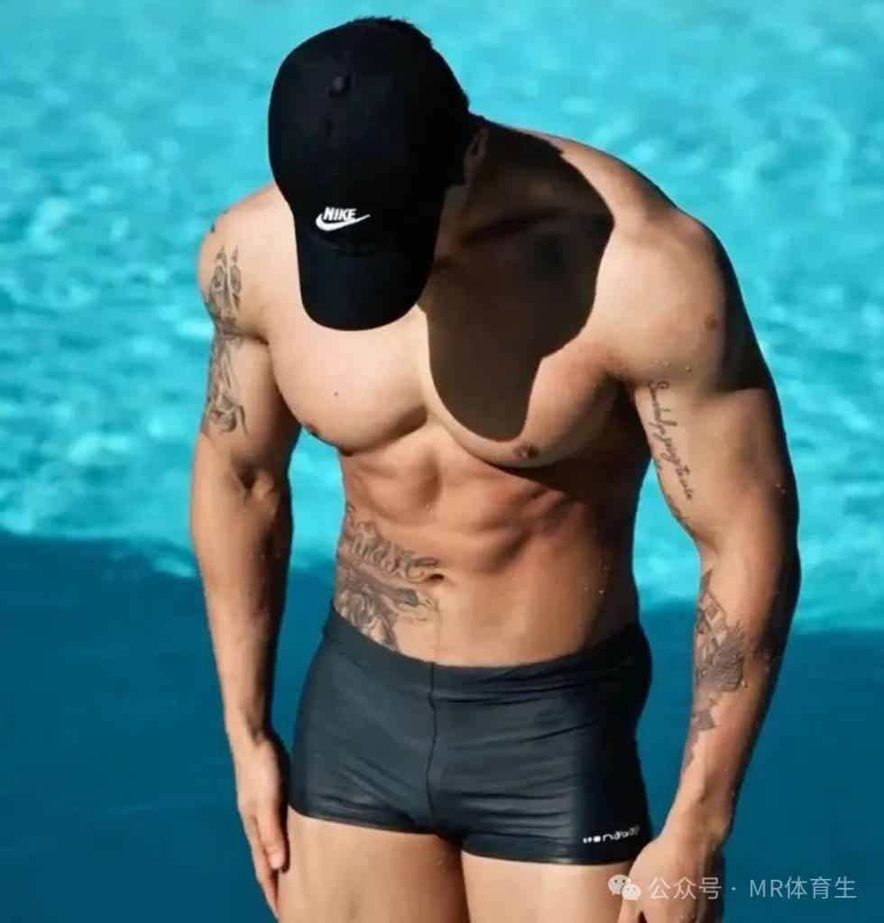 在澄澈泳池边,他迈着自信步伐,每一步都散发着无可抵挡的魅力。黝黑的肌肤闪烁着健康光泽,流畅而极具力量感的肌肉线条,是汗水与坚持的勋章。身上的纹身,似在诉说着独属于他的故事,增添了几分不羁与个性。