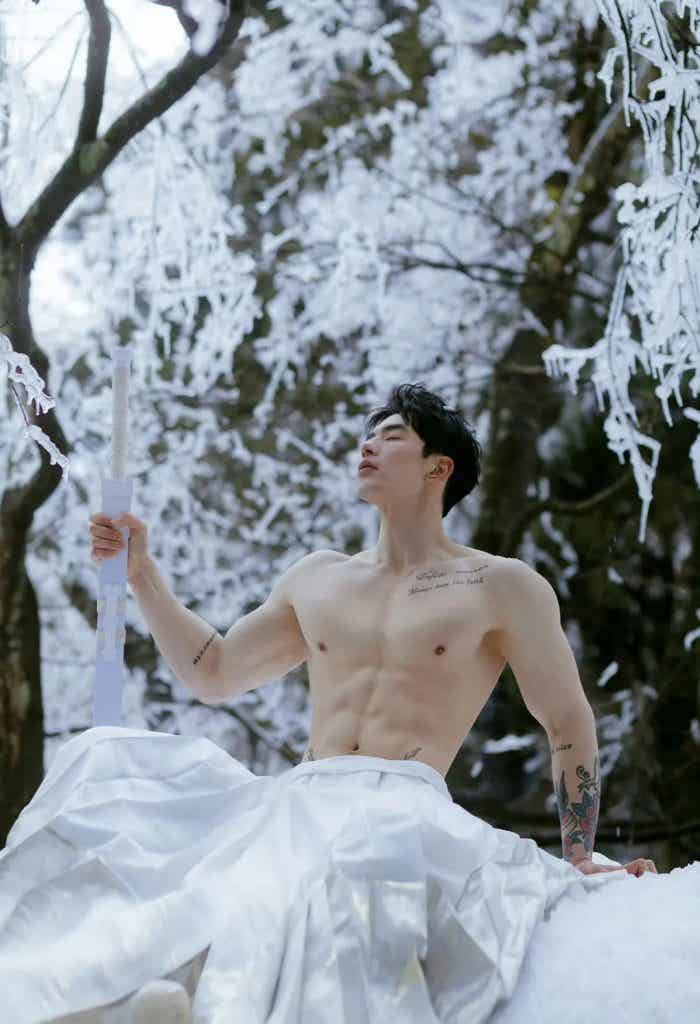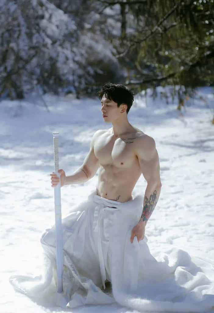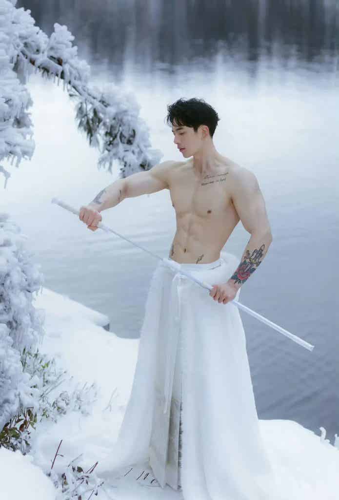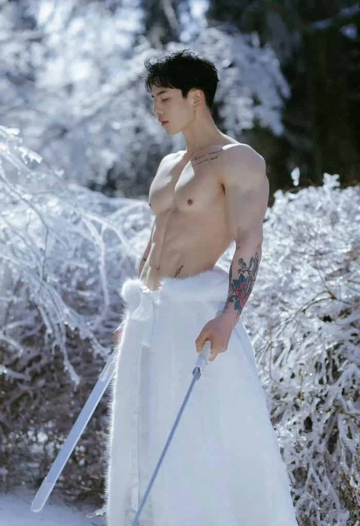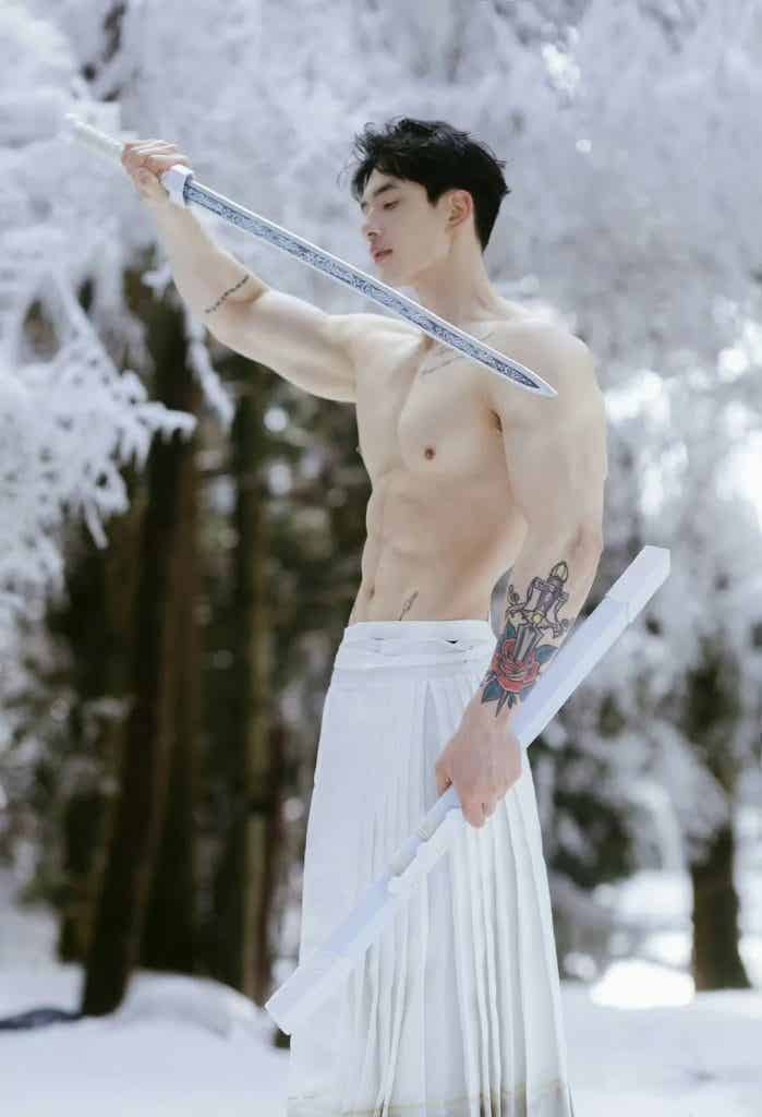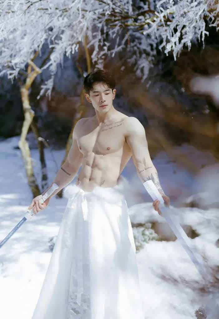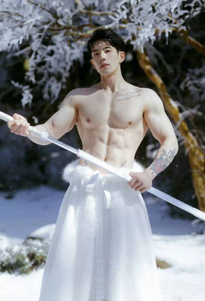 映入眼帘的是一个古风小哥,健壮身材,硕大胸肌、麒麟臂尤其亮眼,小哥着白色衣裳,裸露上半身健壮,手持长剑,在大雪里拍照,小哥白皙的皮肤和雪景相得益彰,就像一个雪中的俊美少侠一样。 小哥的体脂率也不是很低很低的那种,因为有腹肌,小哥的体脂率绝对不高,小哥的身材是极其美好的肉感身材,看上去肉感十足,但是又很健壮,不是健美夸张的那种肌肉,这种肌肉也是我所追求的。 小哥的身材比例也是很好的,肩膀宽宽的,肌肉线条分明,头肩比腰身比都极其棒。很多人想拥有这种身材,其实是可以达到类似的效果的。如果你的身材先天条件比较好,头身比和腰身比比例比较好,那可以按照我说的试试。 第一步:让自己身体有一个好的体脂率,如果你是个瘦子可以直接看第二步,如果你的体重比较大,那就减肥,减肥最简单的办法就是控制饮食,减少碳水的摄入,减肥是一个循序渐进的过程,切忌通过断食来减肥,你可以第一周少吃百分之十,第二周在减少百分之十,最后减多少呢,以不影响工作和生活为准。 第二步:配合运动减脂增肌,如果你是瘦子,真是天助你也,直接增肌,经过系统的训练,大概一年你就可以拥有同款小号身材。着重说一下,不管你是瘦子还是胖子,都要严格控制饮食。 ![赞赏二维码]()