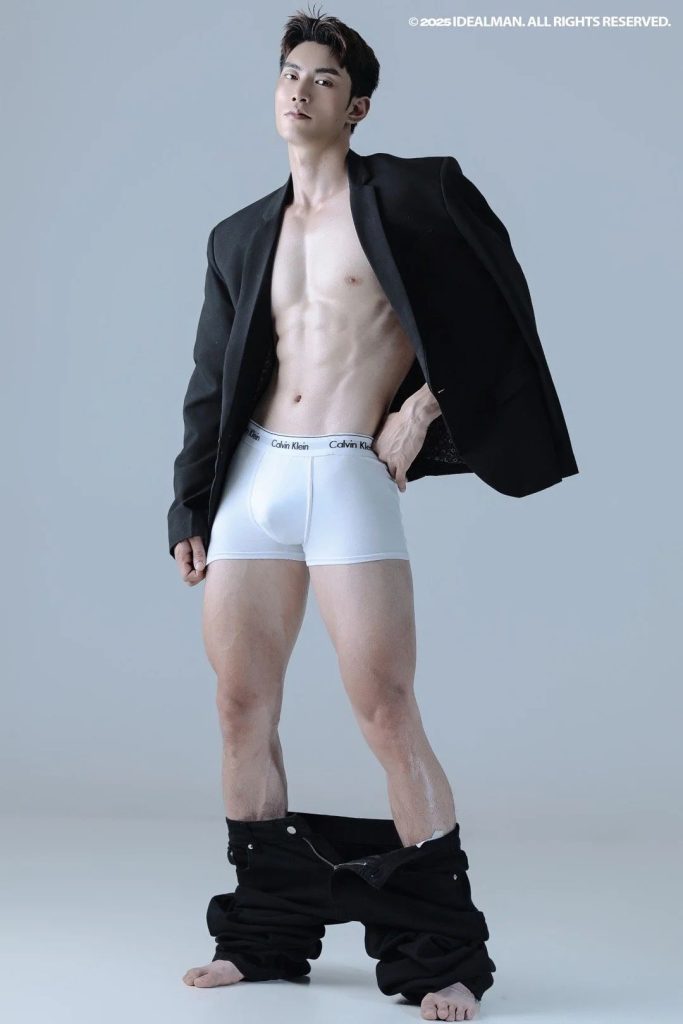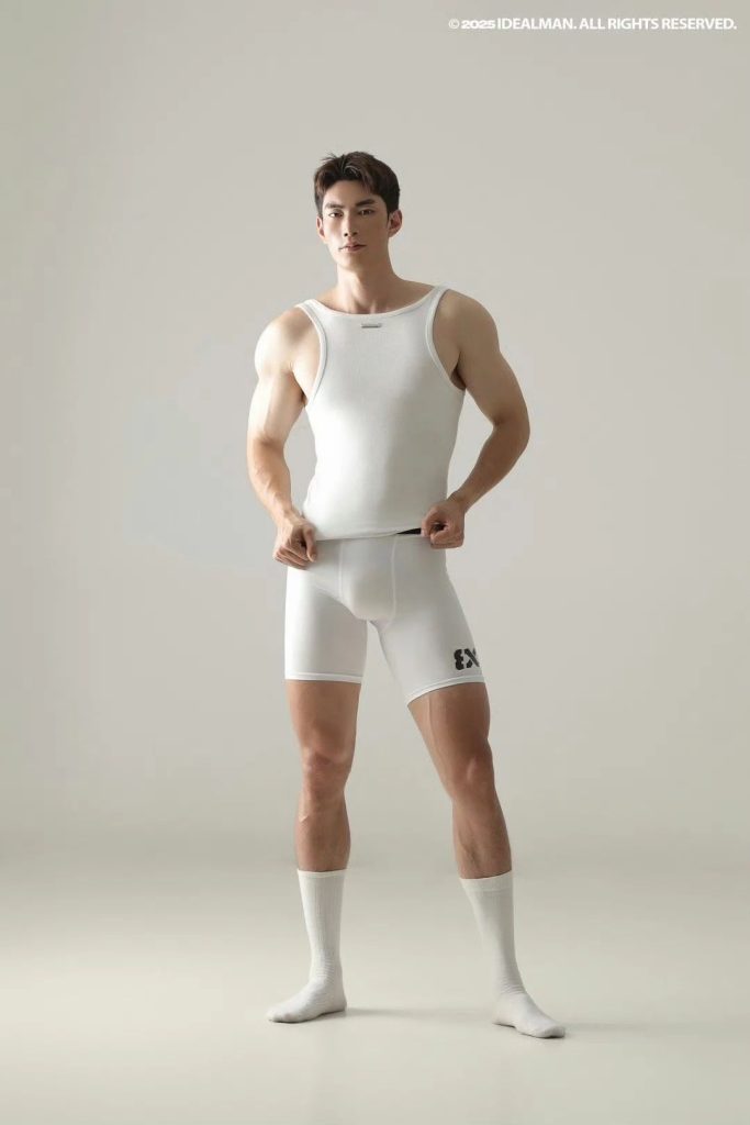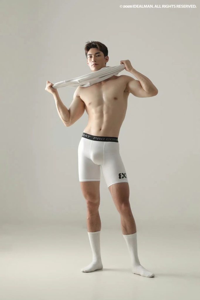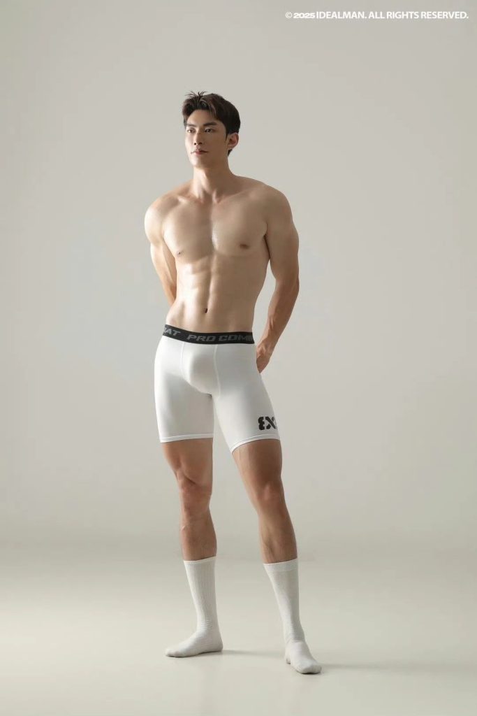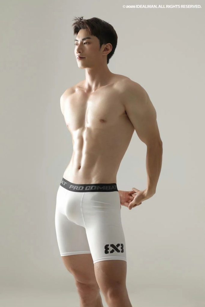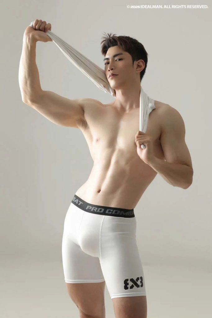 这白色四角就像是给小哥量身定做的一样,只有那么贴身了。