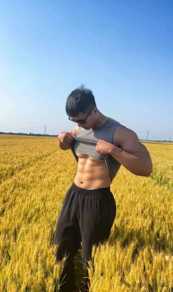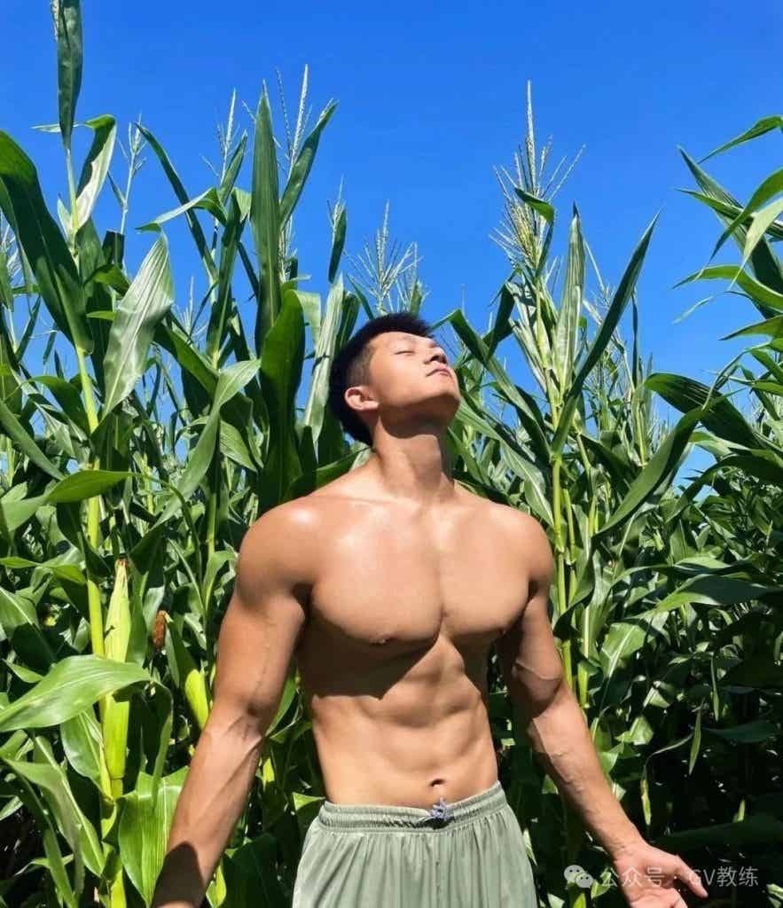 他在玉米地里晒太阳的样子,肌肤呈现出健康的小麦色,力量感与独特魅力并存。那场景,仿佛是大自然与健美的完美融合,让人眼前一亮。