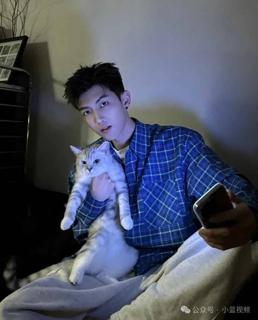 他坐在沙发上,怀里抱着一只软萌的猫咪,温柔地抚摸着猫咪的毛发,眼神里满是宠溺,这画面简直太治愈了。