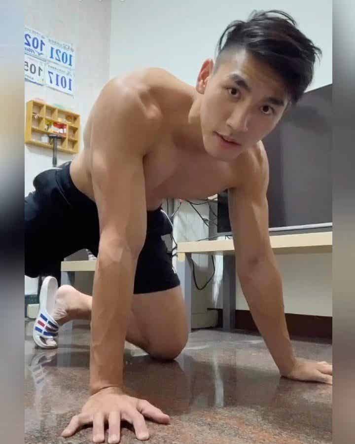不过呢,颜值只是开胃菜,真正让人流口水的还是他的身材!183CM的身高配上89KG的体重,比例简直绝了。胸肌健硕得像两块结实的盾牌,腰部紧实得让人想伸手摸一把,手臂粗壮到随便一抬手就是满屏的荷尔蒙,后背宽厚得像是能扛起全世界。尤其是那双长腿,又直又有力,穿上超短裤的时候,腿部肌肉线条紧绷得让人移不开眼,真的就是“撩人致极的腰线”加上“结实健强的肌肉”,妥妥的流量密码啊!