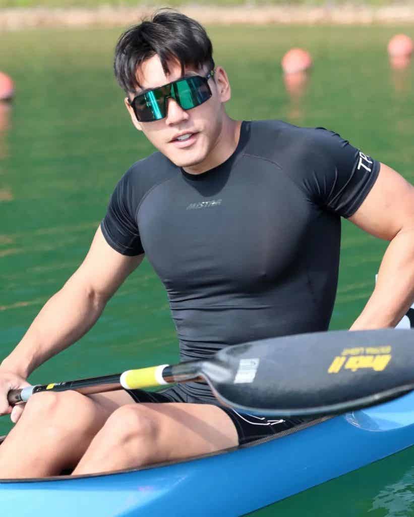 孙尚勇可不是光靠脸吃饭的花瓶,他可是正儿八经的皮划艇运动员,每次比赛都有一群粉丝为他疯狂打call。比赛时的他,穿着一身紧身运动服,肌肉线条展现得淋漓尽致,那种爆发力和力量感,隔着屏幕都能感受到扑面而来的阳刚之气。尤其是划桨的时候,手臂上的肌肉鼓起来,腹肌一块块清晰可见,动作流畅得像是行云流水,帅到炸裂有没有!我看到粉丝抓拍的照片,小哥哥比赛完后满头大汗,阳光洒在他身上,整个人像是镀了一层金光,野性与温柔并存,真的瞬间就会被他折服。