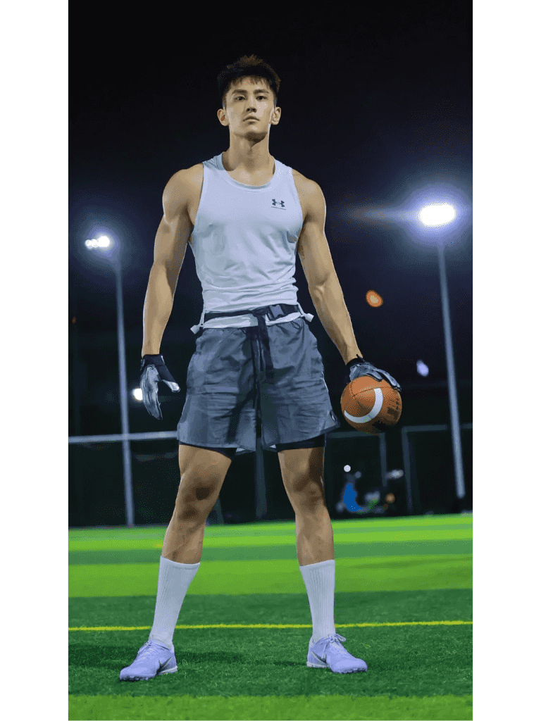 天生就带着一股子硬朗劲儿。别看他年纪不大,这身材可是实打实练出来的成果。听说他小时候也不是那种天生瘦精瘦精的类型,但靠着一股不服输的倔劲儿,一点点把自己打磨成了如今这副模样。现在他在北京的iFitStar健身会所当私人教练,专门给明星和大V们调教身材,手底下带的客户个个都夸他专业又有魅力。