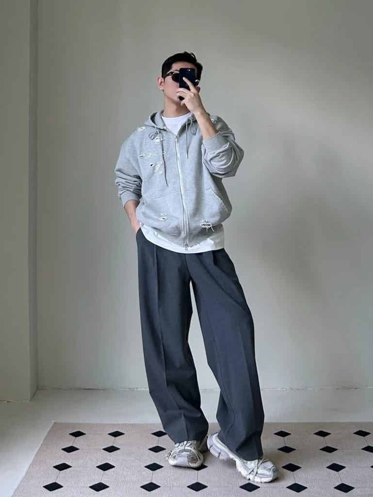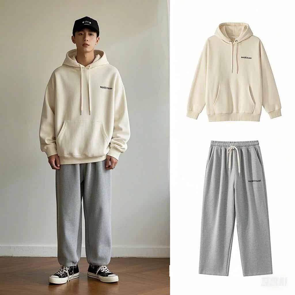 :Oversize版型自带慵懒感,搭配白色休闲裤+帆布鞋,显高又显瘦