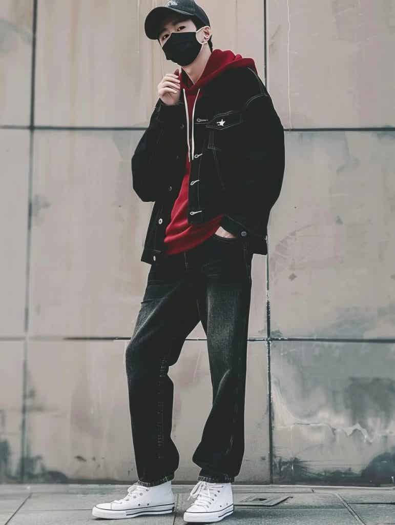 :经典痞帅单品,内搭纯色T恤或连帽卫衣,混搭运动裤或破洞牛仔裤,街头感十足