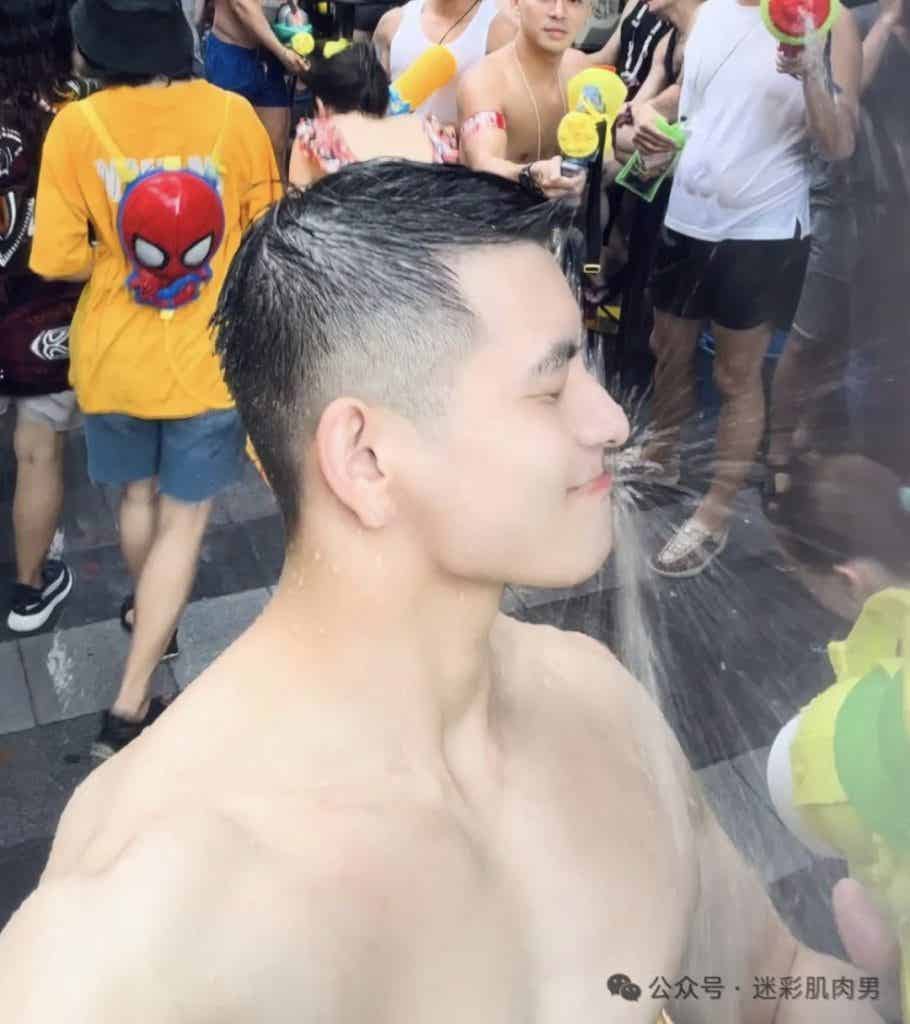 @白斩哥哥的体型管理堪称运动科学的可视化教材。体脂率精准控制在8%-10%的竞技状态,使他在湿身状态下仍能保持肌肉线条的锐利感;斜方肌与三角肌的黄金比例,确保无论是泼水时的动态伸展还是静态展示,都能呈现教科书般的视觉平衡。更值得关注的是其服饰哲学:训练背心的剪裁精确勾勒背阔肌弧度,正装造型通过定制肩线强化倒三角比例,这种"机能性穿搭"思维正在重新定义男性时尚审美标准。