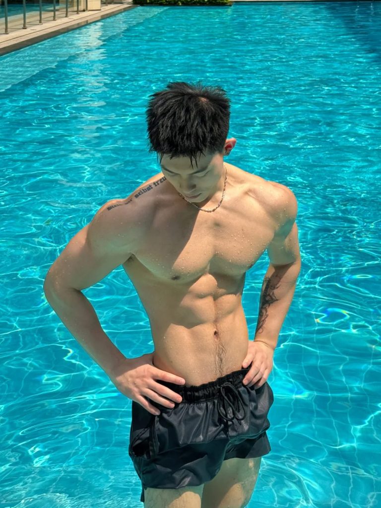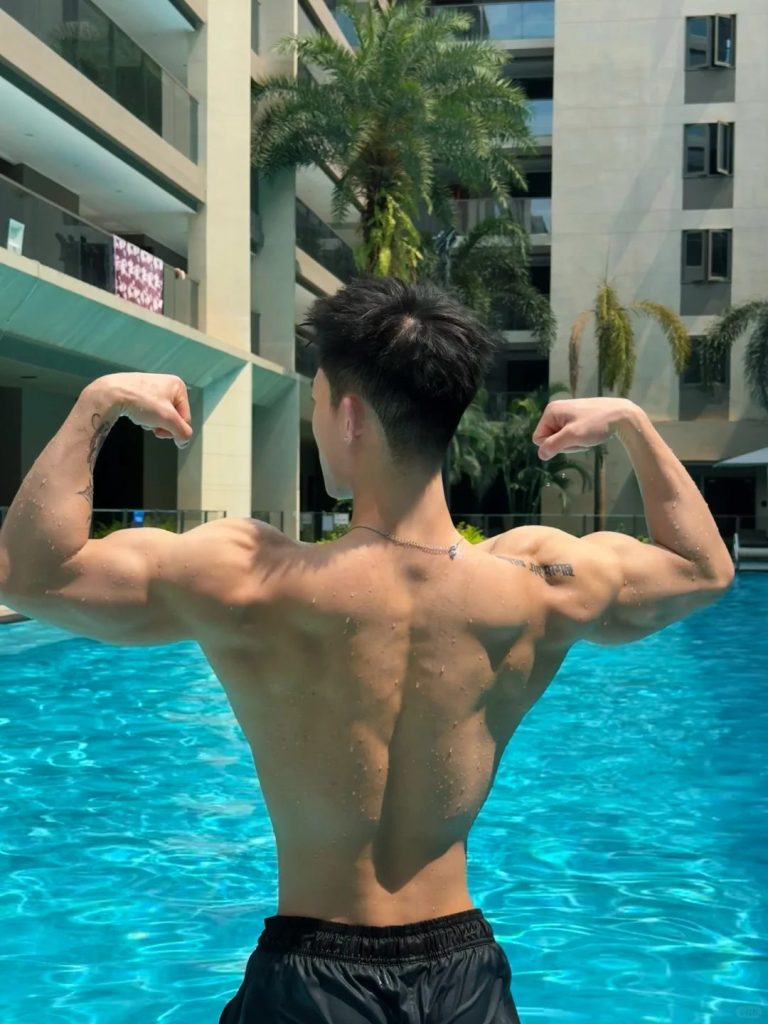 夏天来了,泳池边的风景是不是得有点“辣眼睛”的肌肉帅哥来点缀?今天佑璨我给你们种草一位来自成都的健身博主——PIGGG!这小哥哥,25岁,宽肩窄腰,腹肌硬得跟搓衣板似的,往泳池边一站,男人荷尔蒙的魅力直接炸裂,隔着屏幕都能让人心动到腿软!更别提他那张神似台湾明星敖犬的脸,颜值和身材太上镜了,妥妥的流量密码啊! 第一眼刷到PIGGG的照片,我整个人都愣住了!那张脸,浓眉大眼,鼻子挺得像雕塑,笑起来嘴角一翘,带着点痞帅的少年感,跟敖犬有几分神似,真的长在了我的审美点上。宝子们别喷我啊,明星脸这事儿纯属我个人感觉,觉得不像的也可以来夸夸他的身材嘛!再看他那身材,肩膀宽得能撑起整个夏天,腰细得让人想上手量一量,腹肌一块块排列得整整齐齐,汗水一淌,线条更显眼,瞬间便会被他所折服!