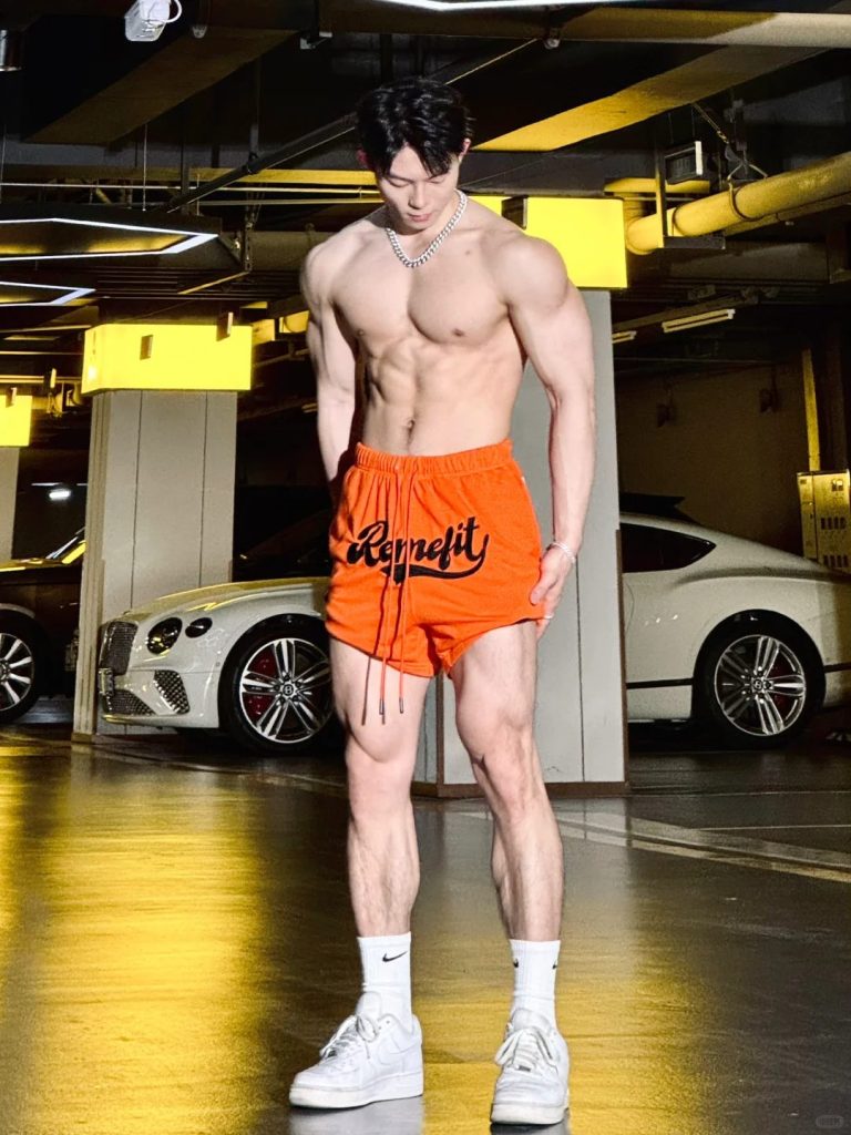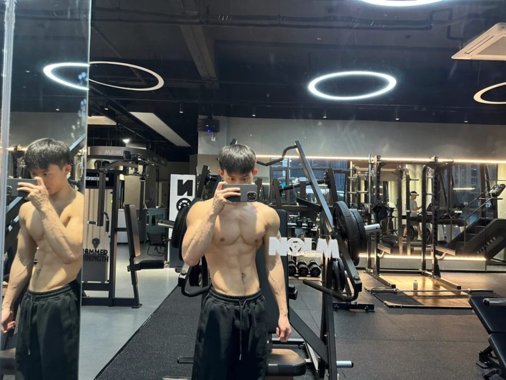 25岁的年纪已经练出了一身让人流口水的腱子肉。别看他肌肉维度比不上那些“巨无霸”健身大佬,但这身材比例真的绝了!宽肩窄腰,胸肌饱满得像两块小面包,手臂一用力青筋都蹦出来,后背线条流畅得像艺术品。那腹肌,啧啧,体脂低到每一块都清晰可见,随手一拍就是壁纸级别。