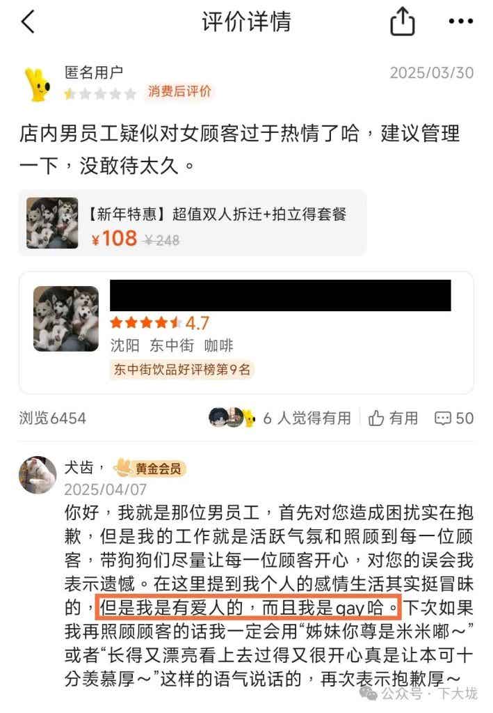 如何对陌生人证明自己是gay是件麻烦事,更多的情况在于,大多数基友不愿意对外人透露自己的性取向。在这起事件中,如果不是女顾客给这家店打了差评,相信这个男员工也不会迫不得已公开自己的情感关系吧?要知道,这种差评对店内的影响还是蛮大的,有些老板可能还会以此为由扣罚男员工的钱。