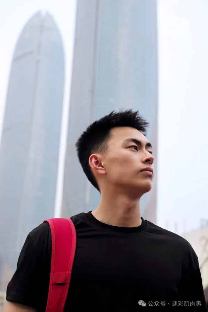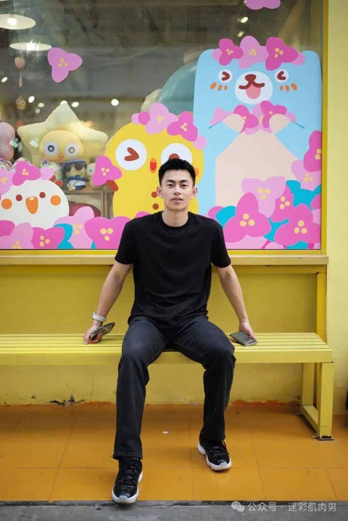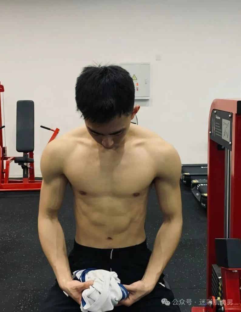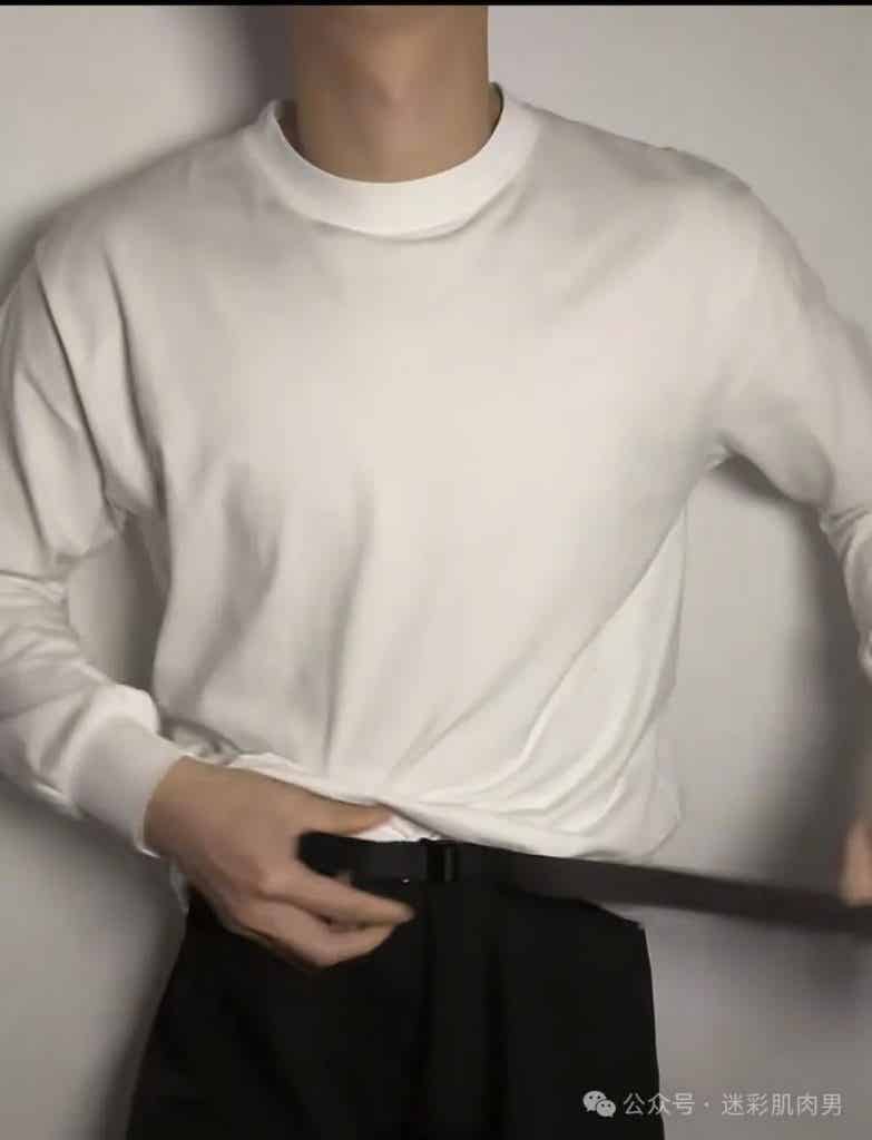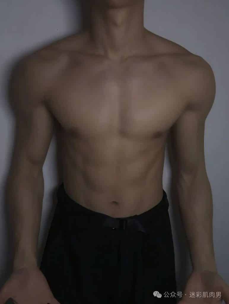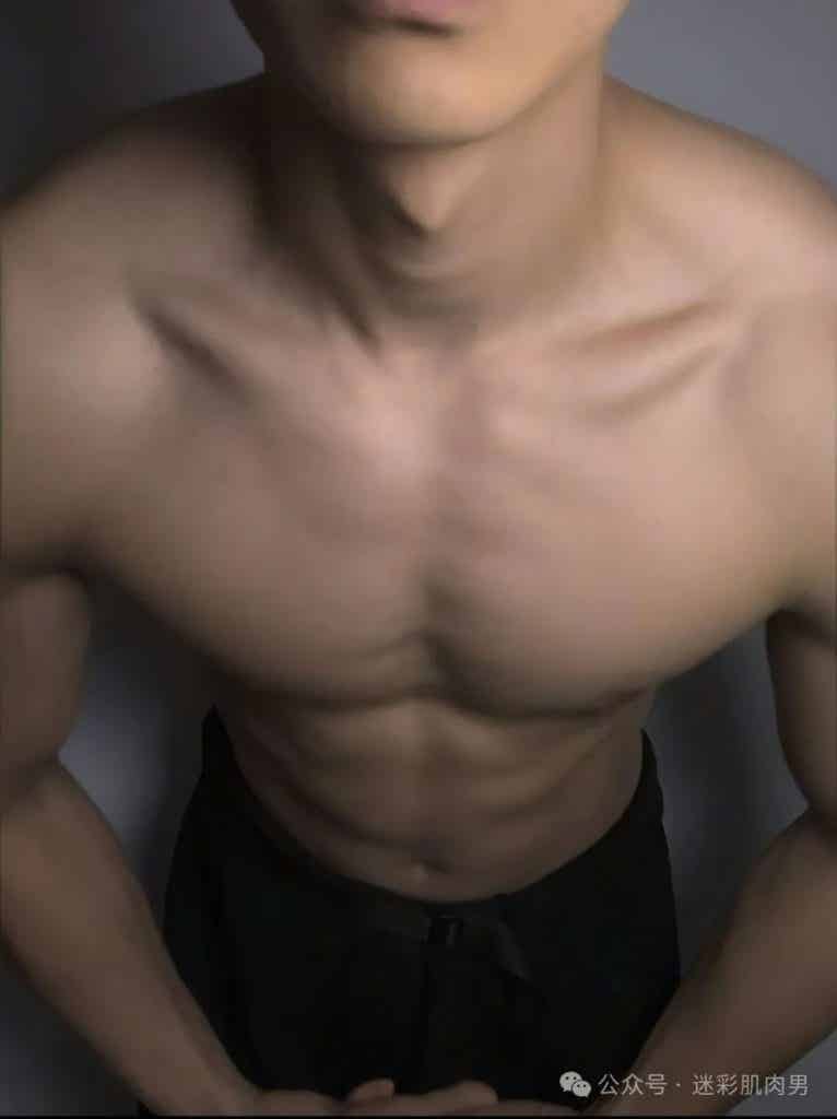 薄脂包裹的肌肉群在运动中如海浪起伏,宽肩窄腰的黄金比例自带古希腊神像般的和谐感。这种"脂包肌"特质颠覆传统肌肉猛男的审美霸权,既有猎豹捕食时的爆发力动态,又保留着少年特有的柔和轮廓。当他穿着简素白T倚靠栏杆时,布料在胸肌处绷出的褶皱与袖口若隐若现的肱二头肌,恰如文艺复兴时期大师笔下的衣纹处理技法,让力量美学生活化。