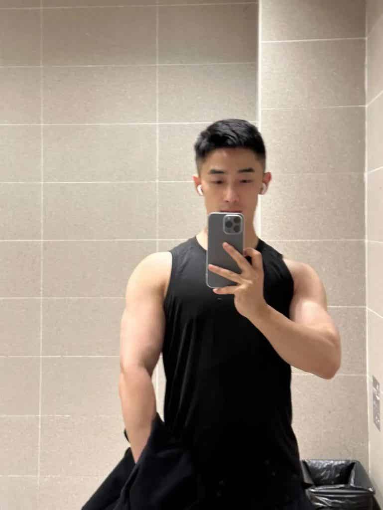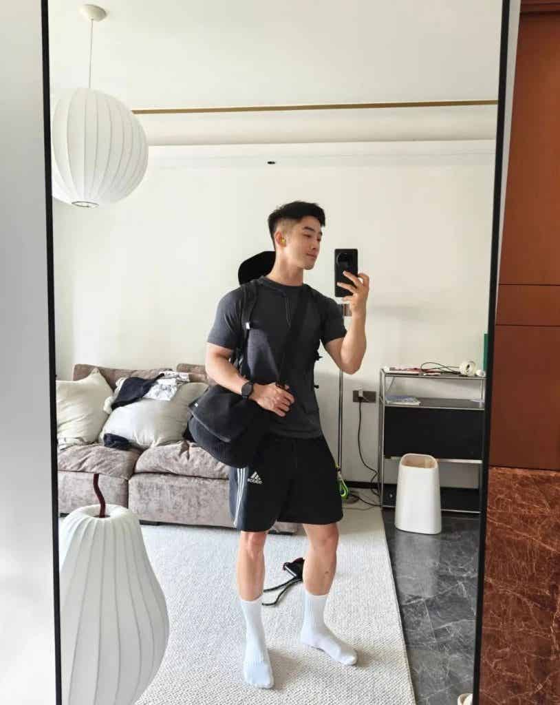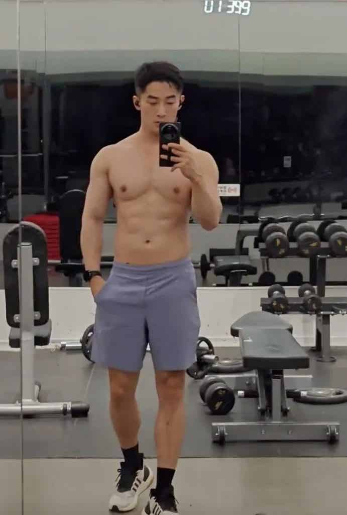 训练完后在镜子前对镜自拍