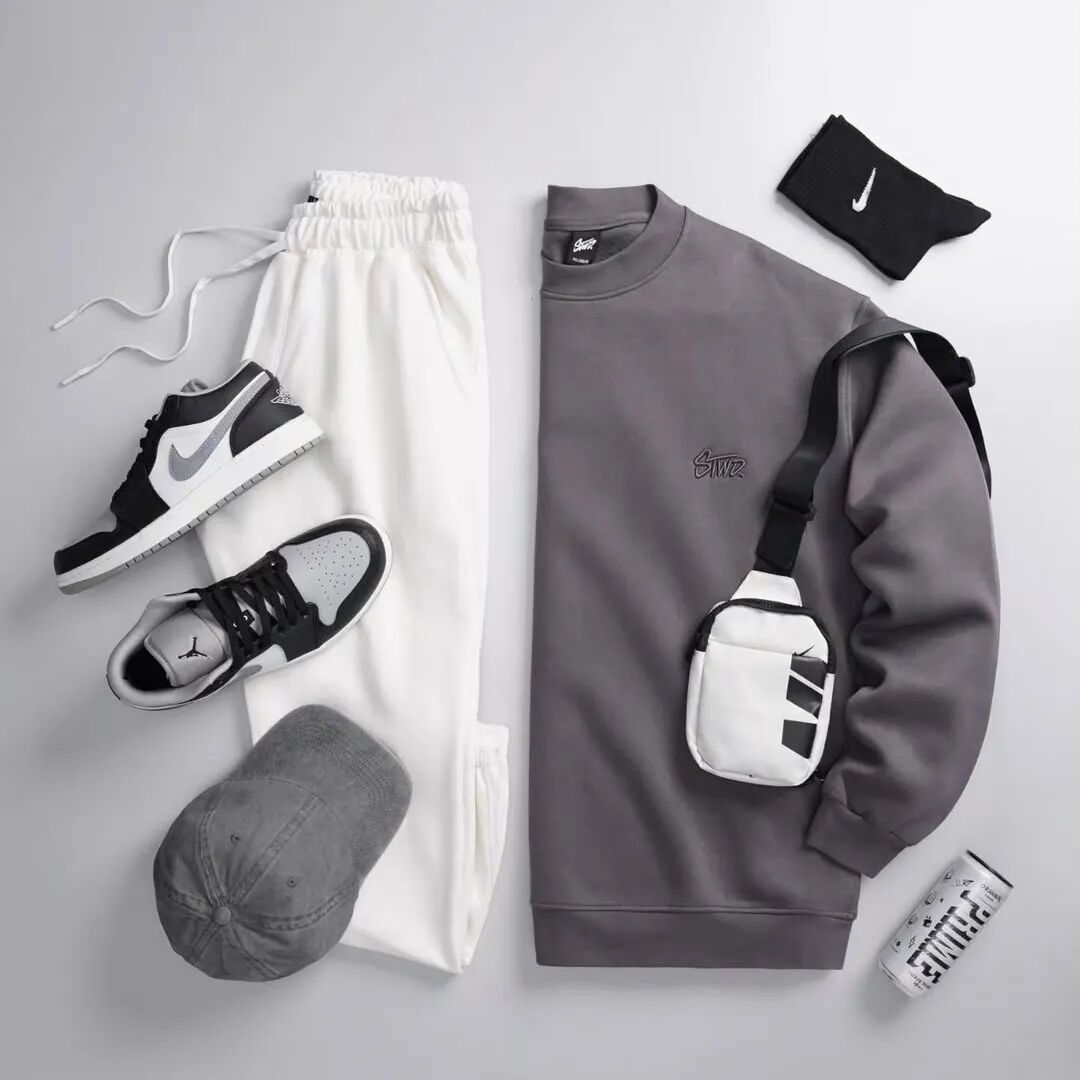 在初秋季节,“卫衣+卫裤”的组合以舒适自在、时尚百搭的特点,成为打造活力形象的优选。以下推荐4套简单自然的搭配方案,兼顾实用性与时尚感,助力男士轻松展现帅气活力。搭配1:白色卫衣+浅蓝色卫裤+白蓝撞色板鞋白色卫衣干净清爽,浅蓝色卫裤增添柔和氛围,整体色彩清新明快;搭配白蓝撞色板鞋,色彩上形成呼应,强化造型的协调感,适配日常出行、运动健身等场景,尽显青春活力。搭配2:灰色卫衣+白色卫裤+黑白撞色板鞋