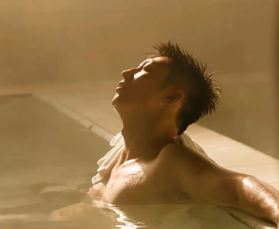 当水珠滚过青筋暴起的肱二头肌,如攀援钢铁索道;当倒三角背肌在水中展翼,如猛禽抖落羽翼雨水——所有见证者都在扪心自问:”这还是黄景瑜吗?”这具被重新锻造的躯体,早已超越健身房的刻度。