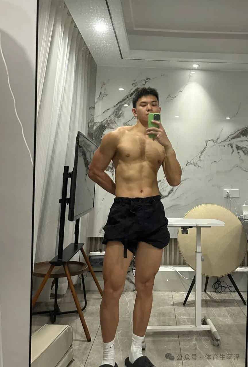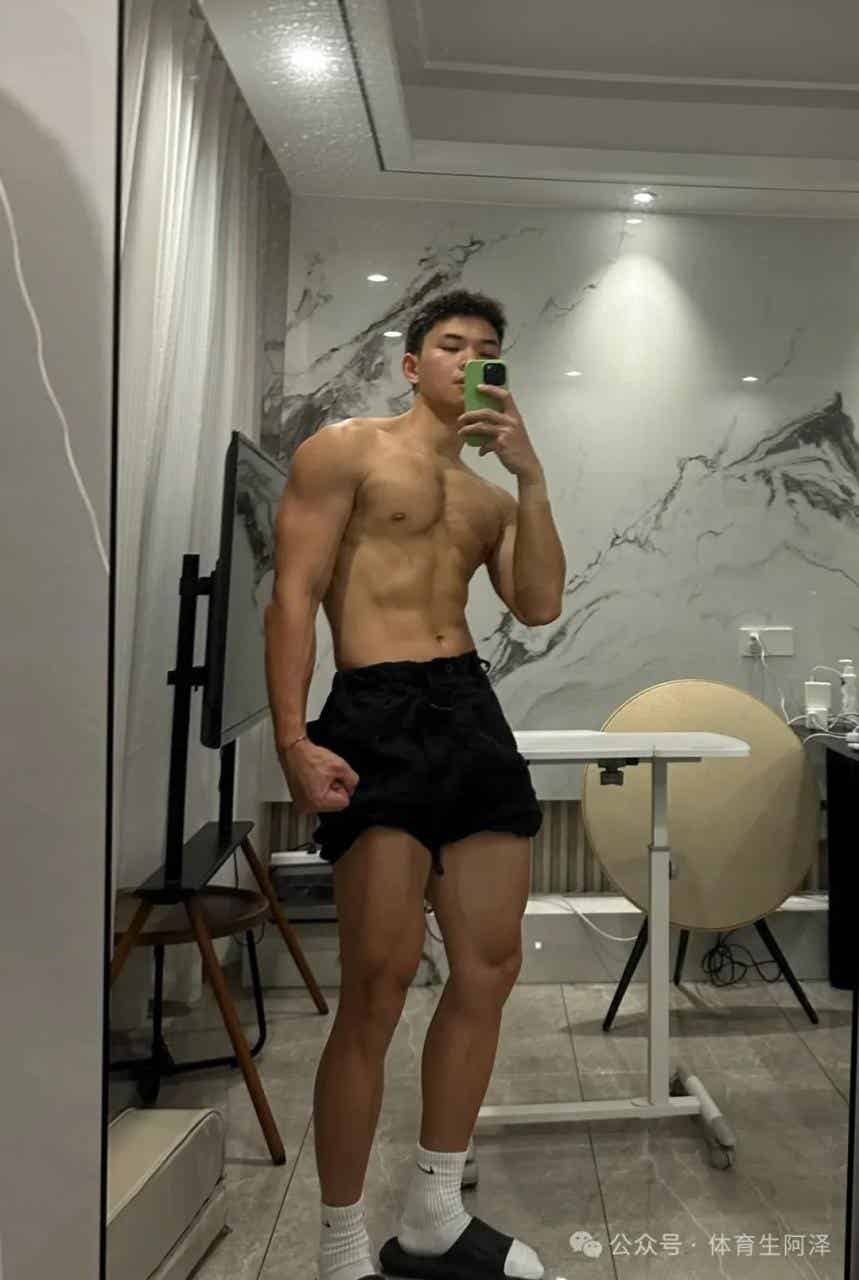 还有这张,大家可以直观的体会出阿泽说的理想当中的体育生的腿的感觉了吧!那种感觉描述不出来,看这张图大家一定可以领悟的。这个腿部线条真的而是别太帅啊!不知道大家喜欢这个大包黑皮肌肉猛男吗?