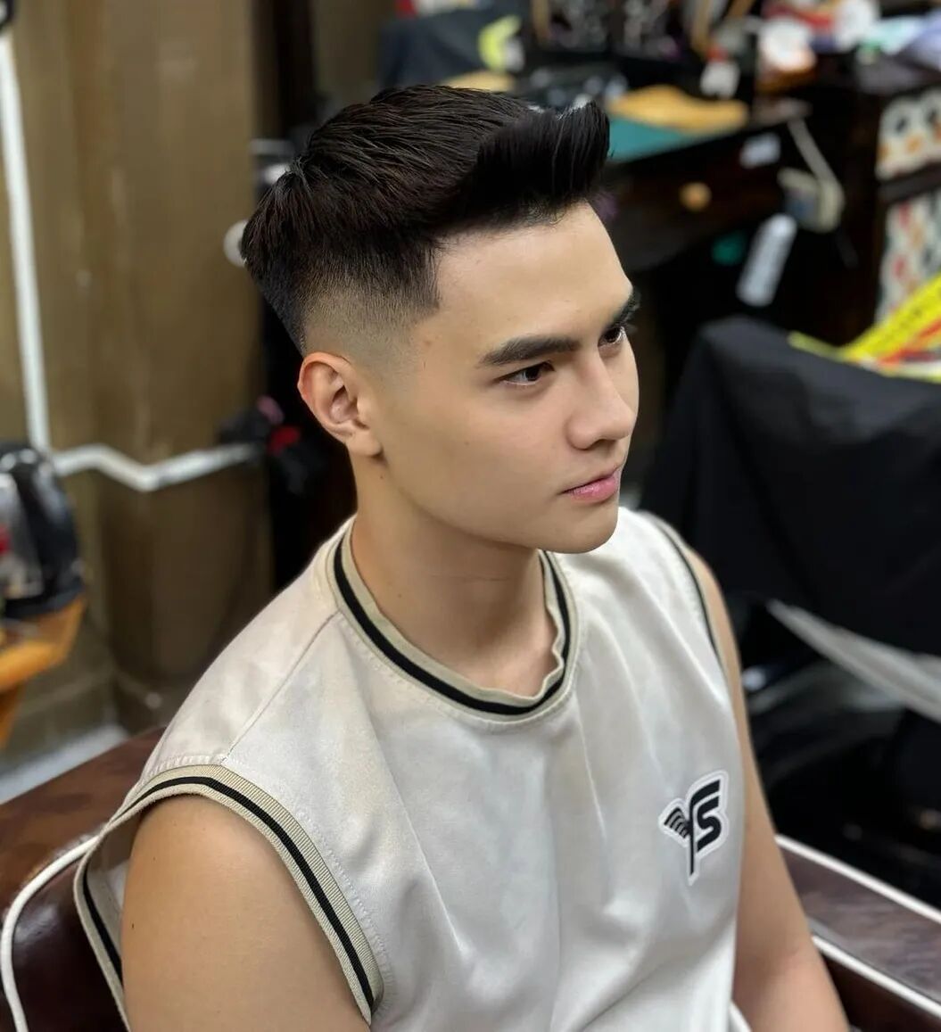男生剪寸头发型的时候,可以把自己帅气的五官展现出来,其实上面这款露额发型也可以!侧边铲短,刘海位置的头发往上梳,让你的脸部轮廓更加明显,五官也更加立体,看起来非常潮流帅气!