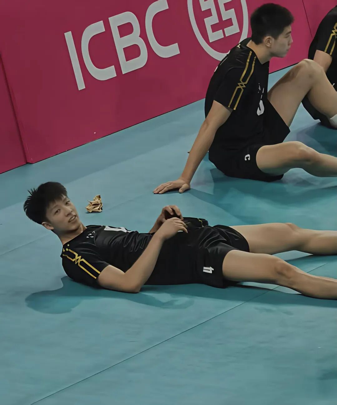 特别是那“躺着笑起来”的瞬间——可能是训练间隙短暂休息时,也可能是庆祝得分过于投入不小心坐倒在地时,他毫无顾忌地躺在地板上咧嘴大笑,那份率真、放松、甚至带点“二哈”般的憨直,瞬间融化了赛场的紧张气氛,展现出19岁大男孩特有的赤子之心。这种强大的威慑力与邻家少年般亲和感的无缝切换,形成了难以抗拒的魅力磁场。