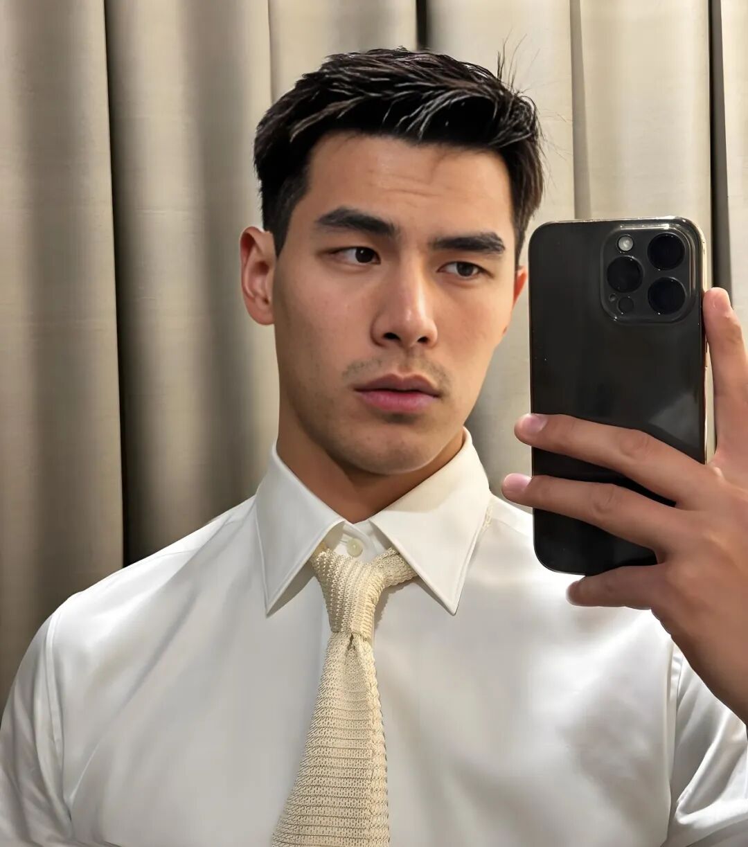 前刺发型以顶部头发向上竖起、呈现“刺状”纹理,两侧头发适度剪短为主要特征,可通过烫发或造型产品打造蓬松感。这款发型兼具活力与时尚感,能中和衬衫的“沉稳感”,打造出年轻有朝气的形象。