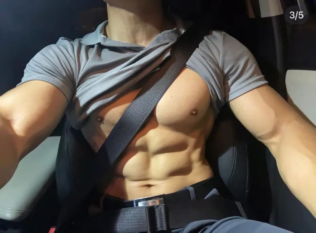 而那性感风的两片方块大胸肌,再加上如巧克力般诱人的腹肌,组合在一起简直就是一道行走的 “风景线”!让网友们不禁由衷赞叹:“这才是真正的老司机啊!谁说开车就一定闷且无聊,这般开车场景,简直妙不可言!”