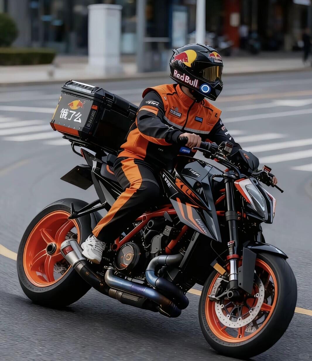 有人说,穿这衣服,比送外卖本身还容易被搭讪。毕竟当一个整体线条看得过去的男生突然变成“赛车风硬汉”,想不被注意都难。