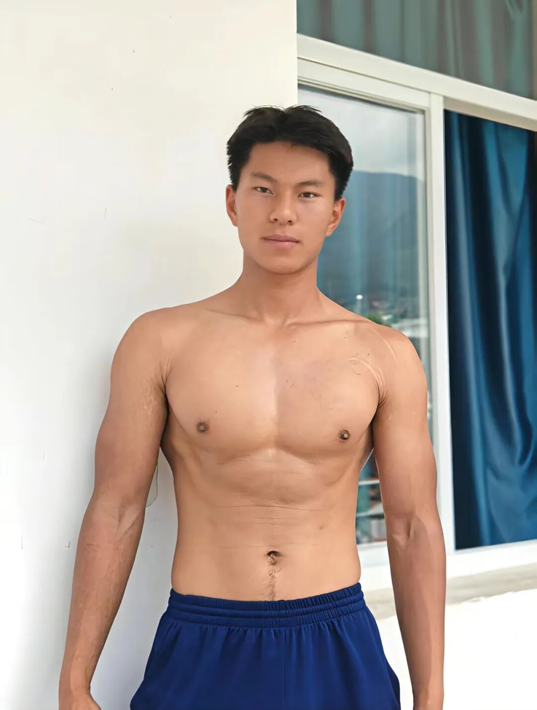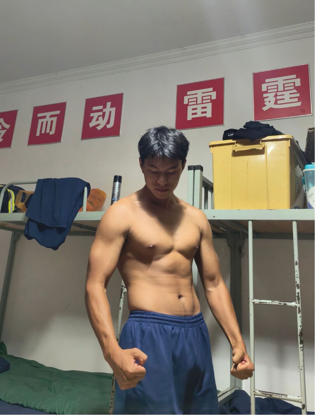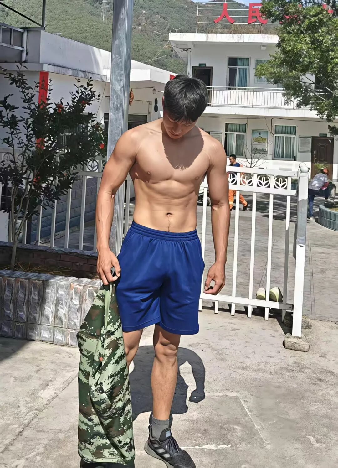 这训练场上唯一称得上喧嚣的,正是这团二十三岁生命火焰的张扬气息。宽阔胸膛上每一块肌肉都如同斧凿刀劈过般棱角分明,整齐的腹肌层叠而见。他的肤色是阳光与风霜调和后的黑,那是高原赠予的铜铸肌肤——汗珠滑落的凹处便是一条条细小的银河,仿佛流经的每一寸土地都在接受洗礼。