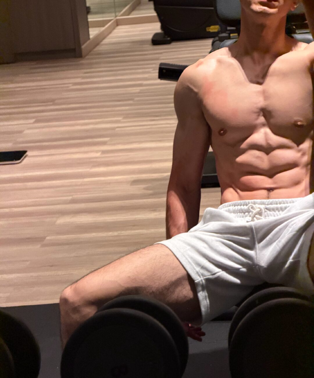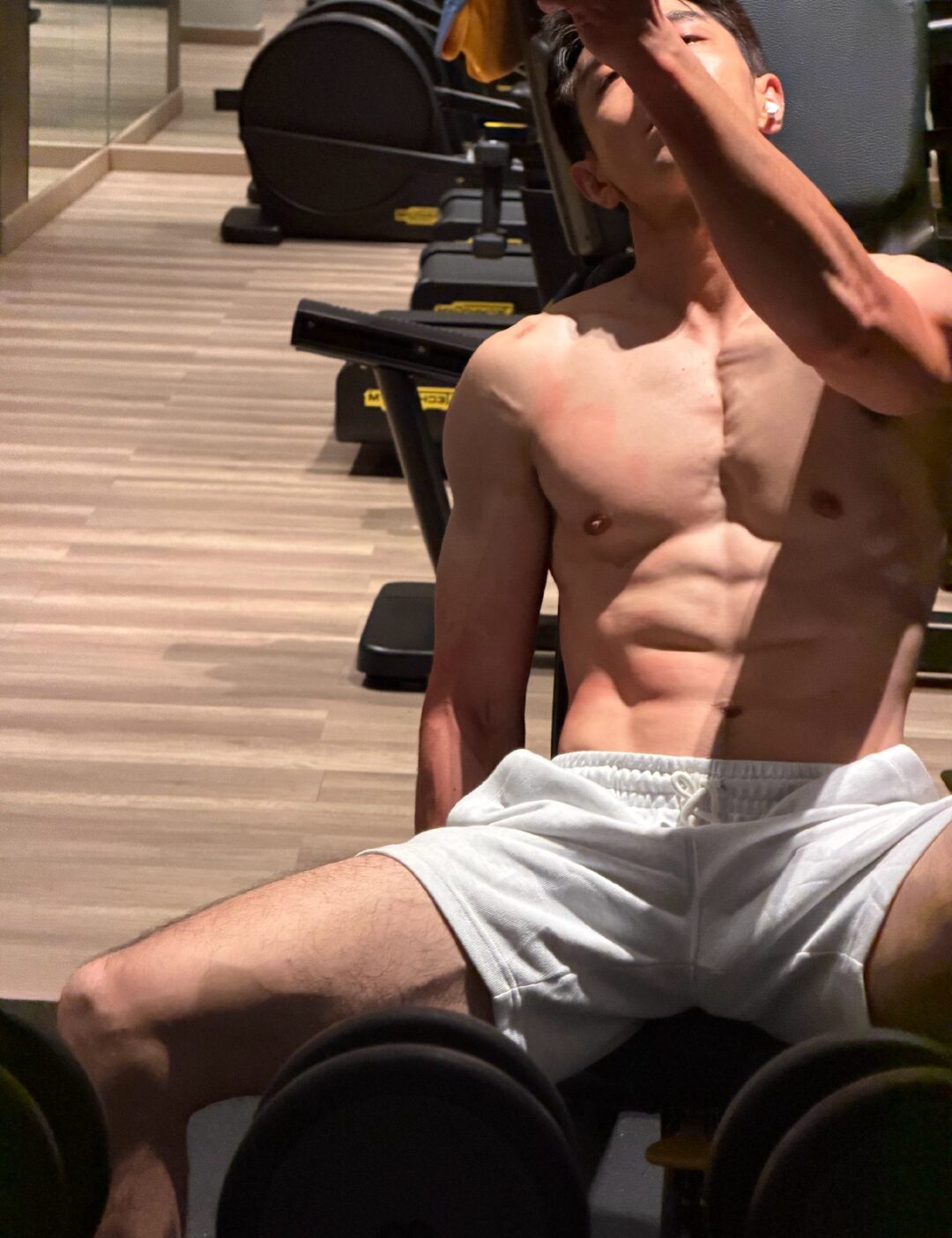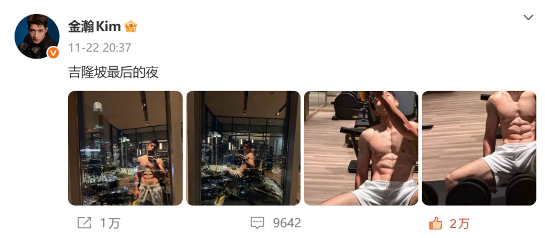 从其公开分享的动态不难看出,金瀚在吉隆坡的夜晚还在锻炼,并且还大方的晒健身照,一口气发了四张。