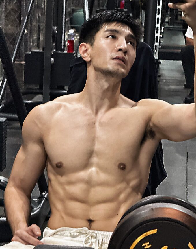 从全身照再到腹肌近照,虽说没有全方位展示自己的健身成果,但从其成型的腹肌和胸肌便不难看出,金瀚为此付出的汗水和努力。