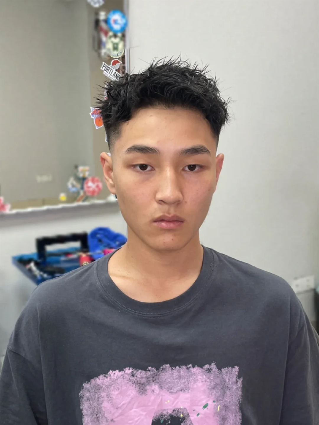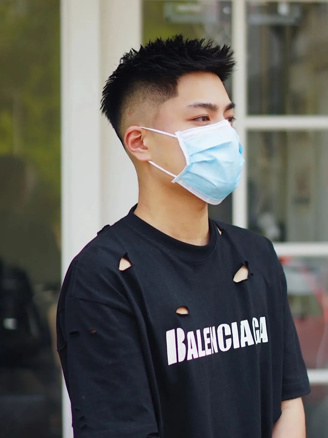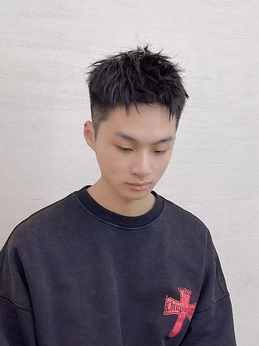这款发型最近几年特别火爆,如果说寸头是男生的百搭发型,那么前刺发型就是男生的个性帅气造型,两边的头发通常铲光,中间的头发剪短并且打造出往前翘起的效果,整体特别硬朗帅气,也霸气十足!