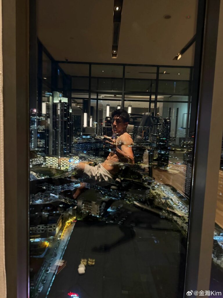 再看金瀚发动态的背景,当时他在吉隆坡,就算是夜晚也没停下锻炼的脚步,之后干脆大方晒出四张健身照 “交作业”。