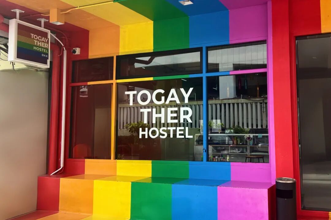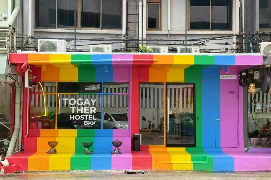 在泰国首都曼谷的是隆路(silom)附近,有一家广受年轻基友喜欢的彩虹青旅,叫做同乐彩虹青旅(英文名称:Togayther Hostel Bangkok,二店叫:同乐Black)。自2025年4月开业以来,它长期维持满房的状态,一到节假日就一床难求,国内的基友一定要提前预订才能抢到床位。