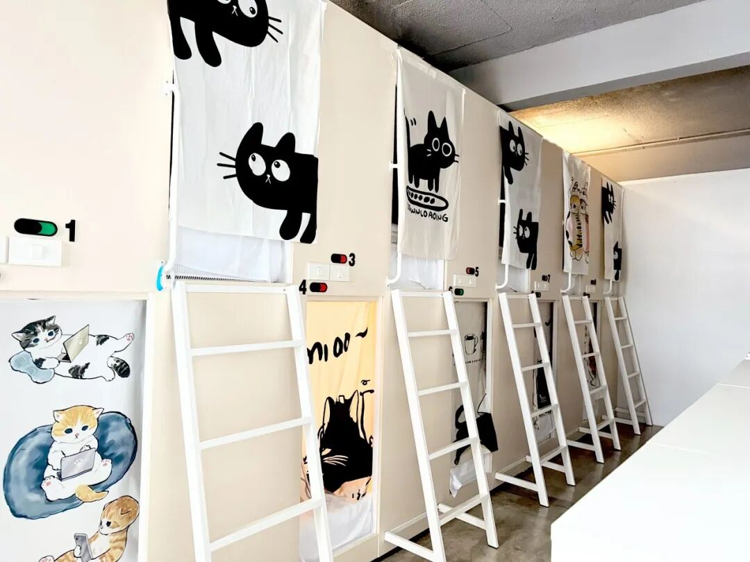 当然,我们的回头客数量非常多,经常会碰到脸熟的客人,开业到现在,还有客人在这里住了2个月。我们青旅是24小时营业,床品设施各方面很不错,体验感也很不错,对大家很友好,像在我们大厅的互动区,客人们可以交到朋友。
