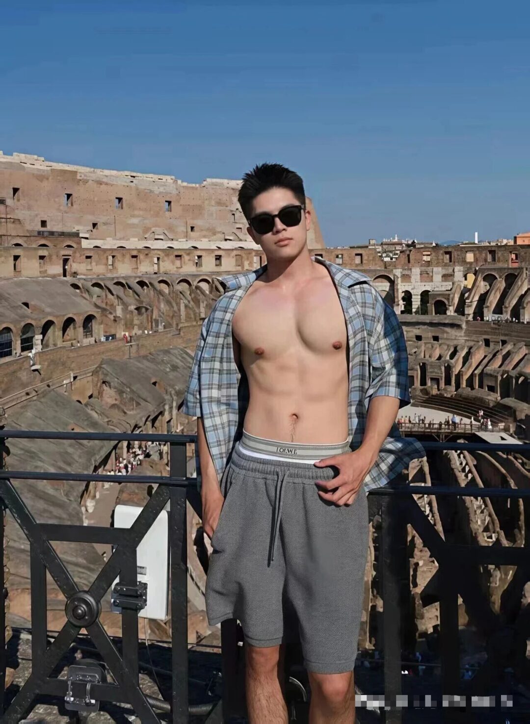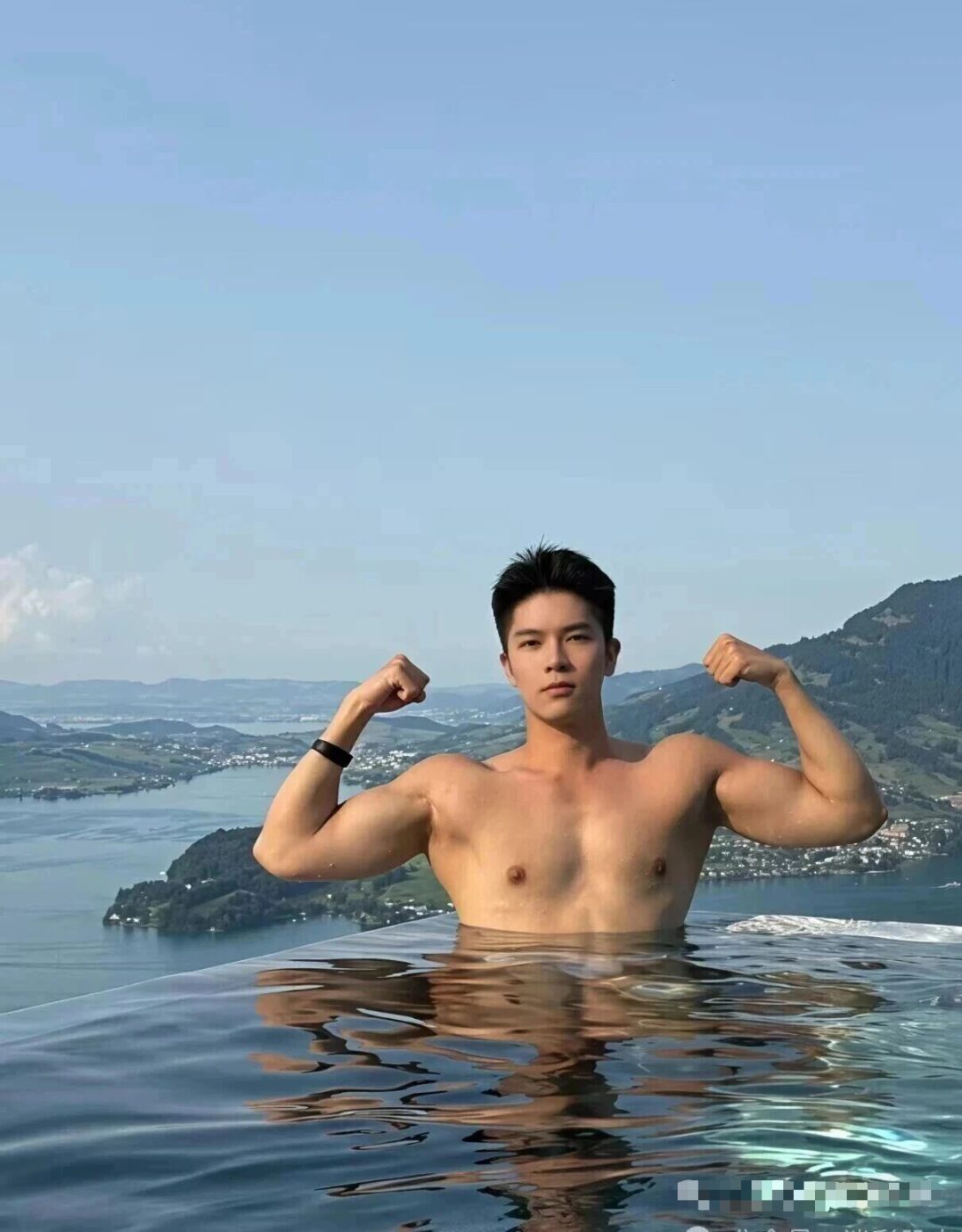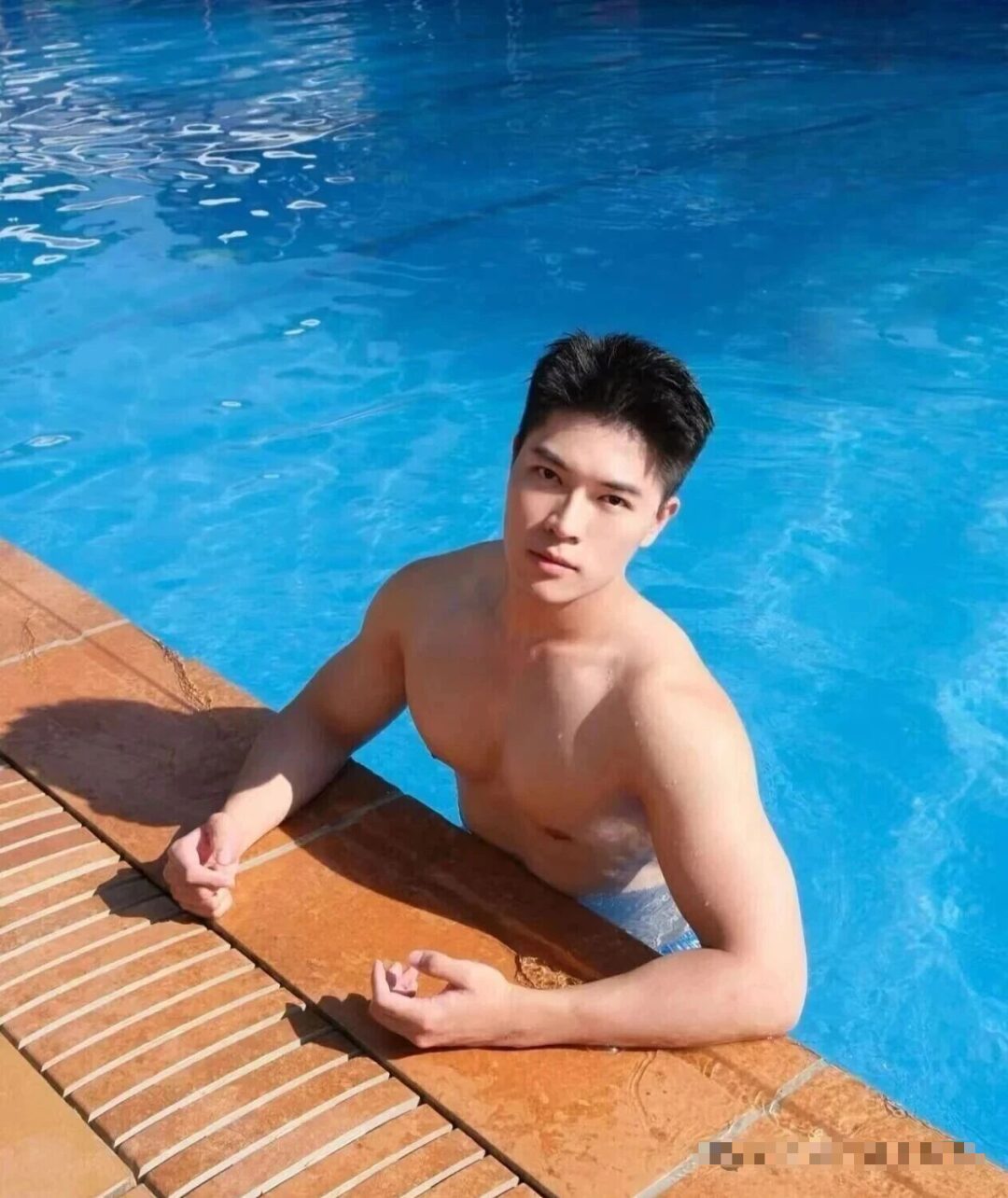 还有他去旅行时在泳池边拍的照片,阳光洒在身上,肌肉线条在阳光下更显好看,青春活力直接拉满。