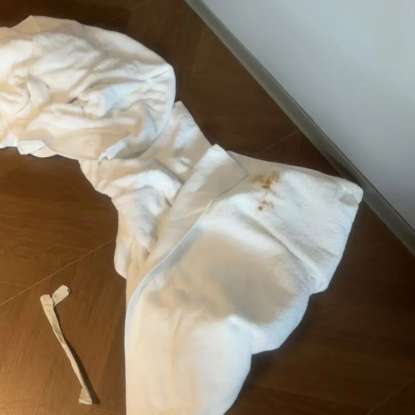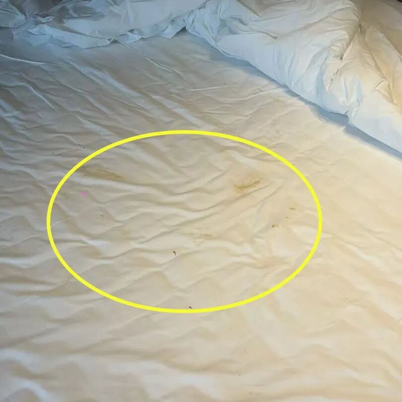 照片显示,该基友入住过的房间的床上用品被人弄脏了,仔细观看照片可以发现,床单、被套、床垫、浴巾上疑似有粪便,看上去非常恶心,虽然量不大,但是却非常明显。酒店工作人员告诉该基友:“一共(需要赔偿)240元。”