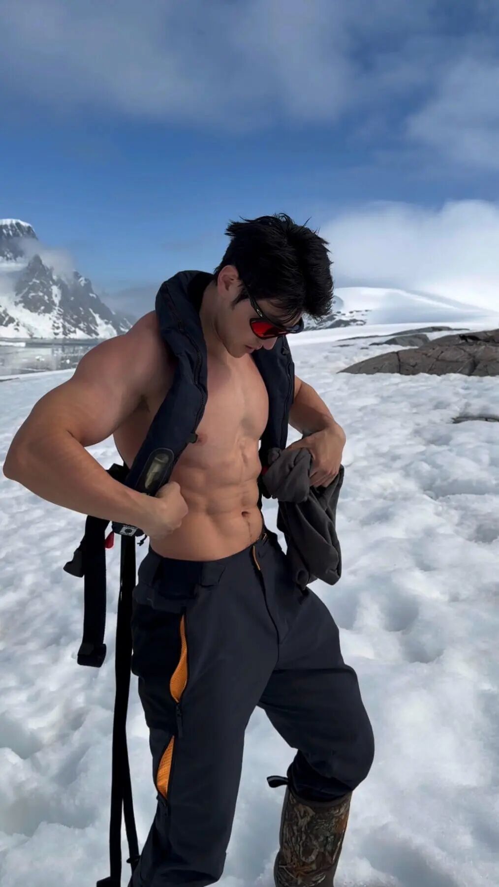 在照片中,我们既能看到他在温暖的室内展示傲人的腹肌,也能看到他赤膊站在南极般的冰天雪地中,背靠雪山和冰川。作为一名运动博主,他传达给粉丝的不仅是健身技巧,更是一种挑战极限、拥抱生活的人生态度。