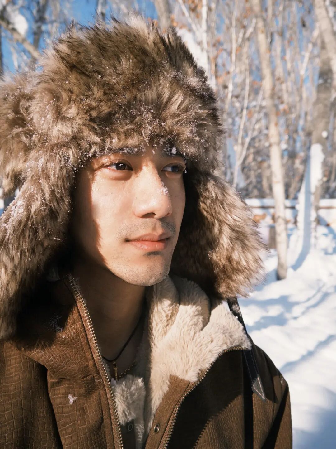 无论是在漫天飞雪的户外,戴着厚重的毛皮雷锋帽,还是在健身房柔和的灯光下,他的脸总能精准捕捉镜头。那种干净的气质,配合他时而黑发蓬松、时而染成个性的银白色,展现了极强的可塑性,让他既有邻家大男孩的亲和力,又不失时尚博主的冷峻范儿。