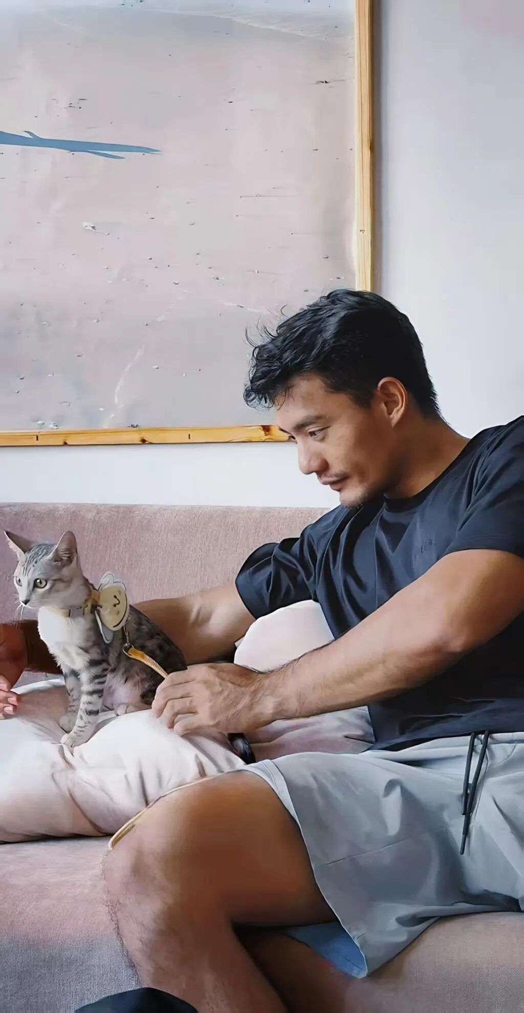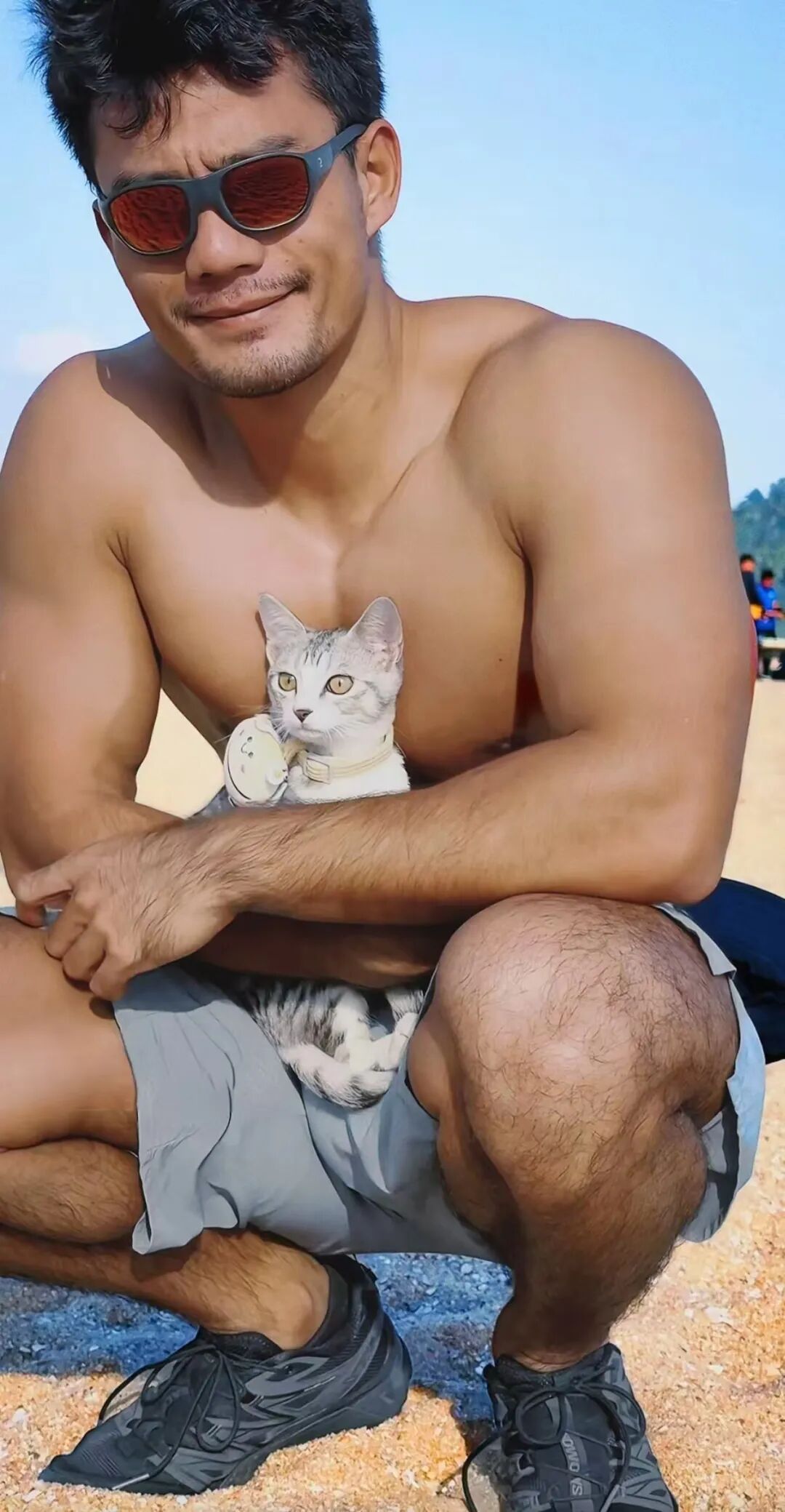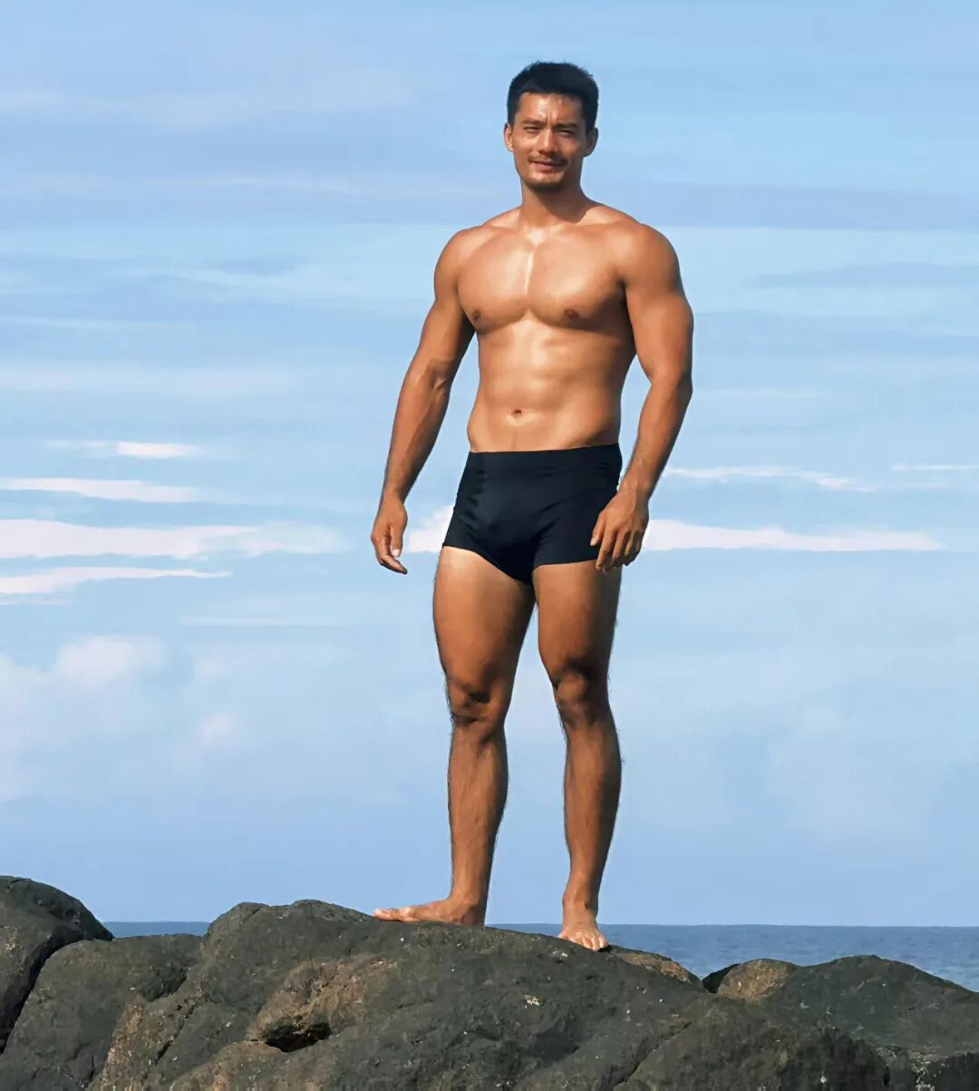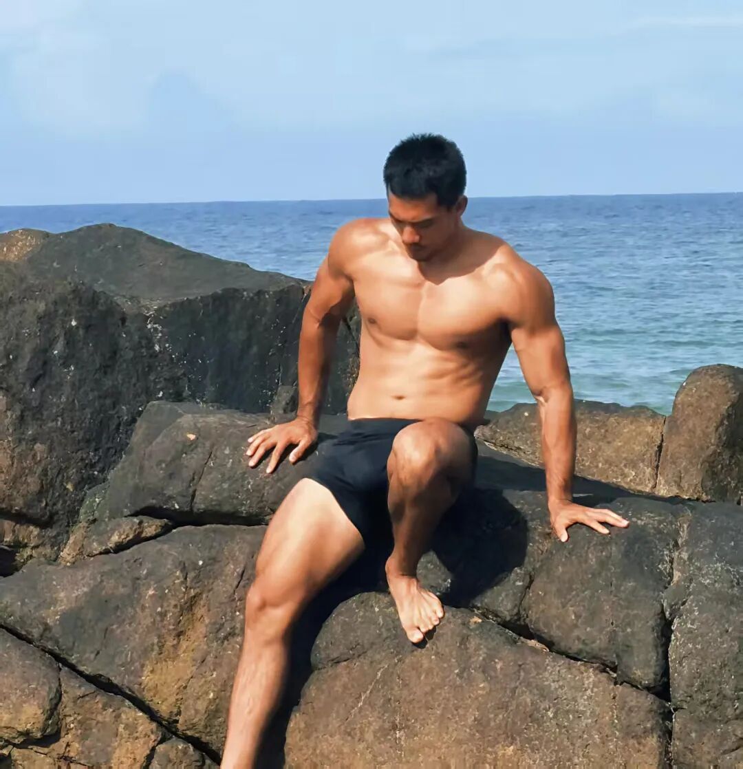 他的粗壮长腿与短裤造型,颠覆了传统审美对“纤细”的执念。腿部肌肉在行走时隆起的力量感,与沙滩上斑驳的椰影形成动态对比,让人联想到海南渔民与海浪搏斗的坚毅身影。这种粗犷却不失协调的体型,正是长期系统性训练的成果:每周五次的力量训练结合冲浪、游泳等户外运动,使他的身体兼具爆发力与敏捷性,如同海南岛经历过台风洗礼却依然挺拔的椰树。
