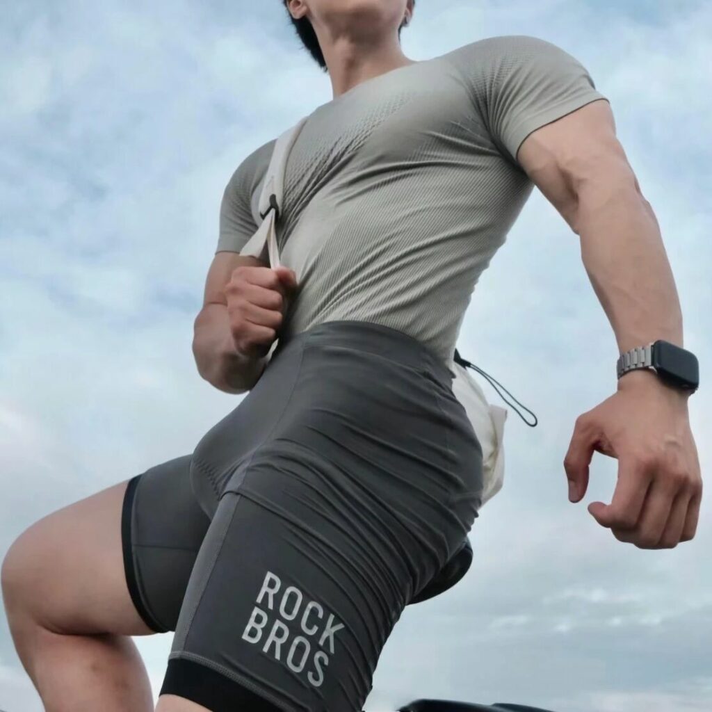 这身骑行服绷在身上跟保鲜膜似的,但不妨能看出帅哥有着绝佳的倒三角身材,特别是这条胳膊,青筋暴起得跟加粗的数据线一样,一拳下来我估计能飞出二里地。再看那根吸睛小竹笋都要把衣服顶穿了,长顺短突,嗯。