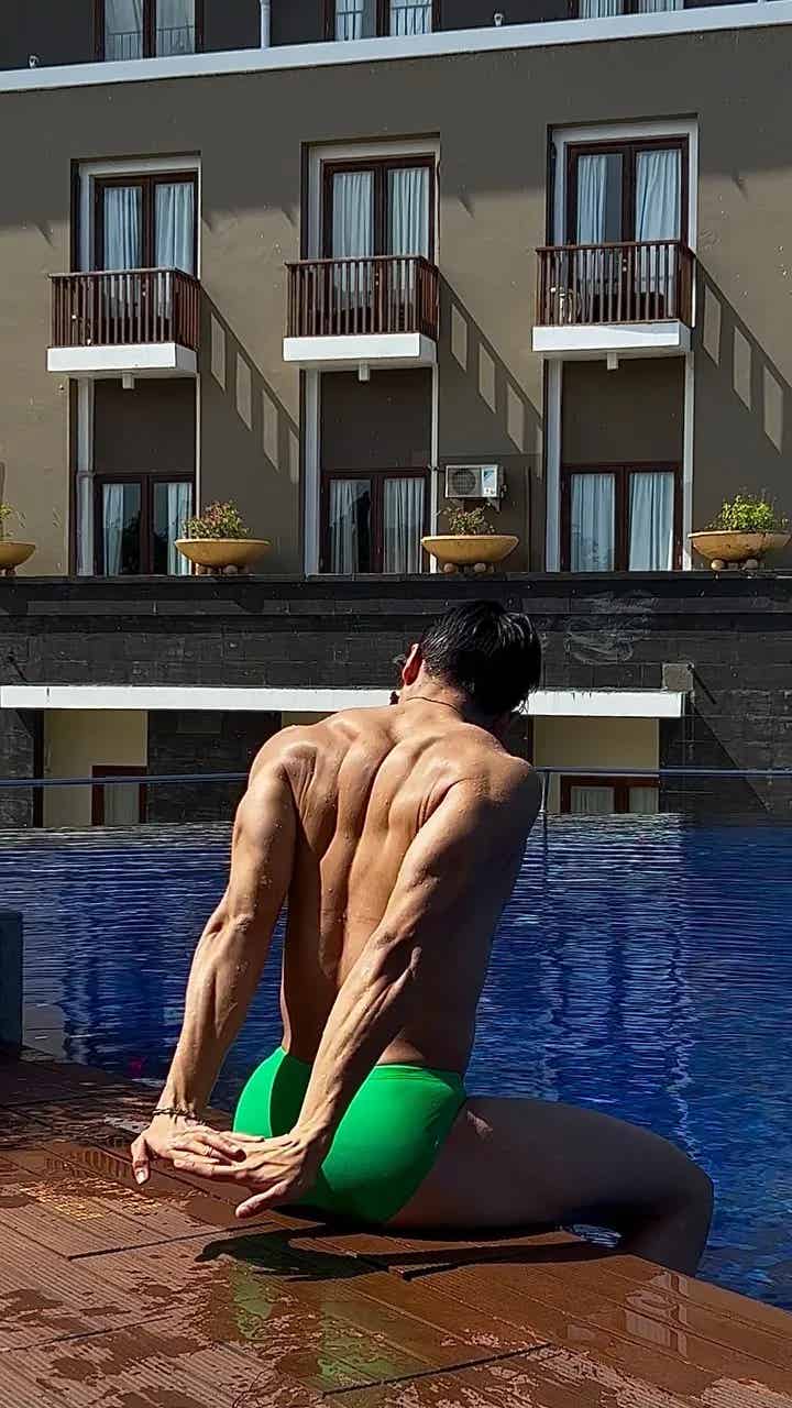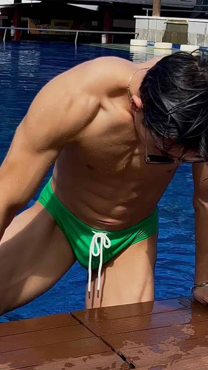 为什么绿色泳裤这么适合他?小哥选择绿色作为泳裤的颜色,真的是非常有心机!绿色是夏天里非常清新的颜色,搭配上他的黑皮肤,反而有一种独特的视觉反差感,让他整个人显得更加突出。那种健康、自信的氛围,仿佛让人一秒就能想到夏日的海滩、热情的阳光和冰爽的海风。