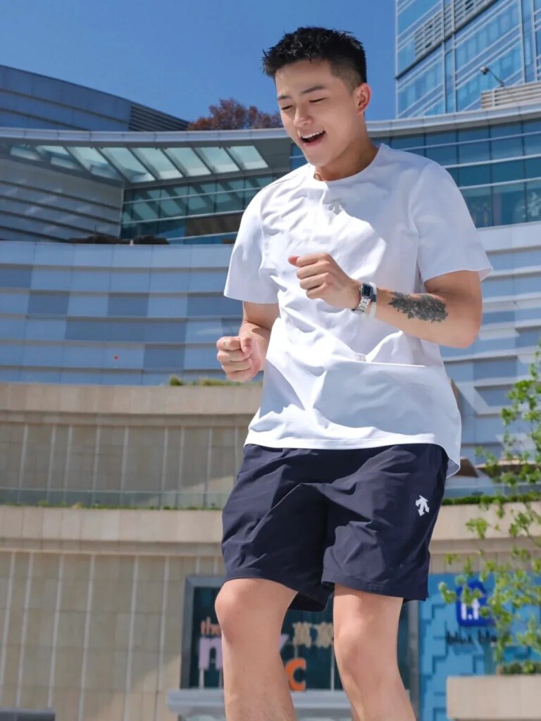 他的气质有点野性,眼神里总是藏着一些“不羁”,嘴角带着一丝狡黠的笑意,好像永远都在琢磨着些什么“坏主意”。他不仅爱运动,简直是运动的代言人,随时都能带着一股子活力冲进任何健身房或球场,快速吸引所有目光。