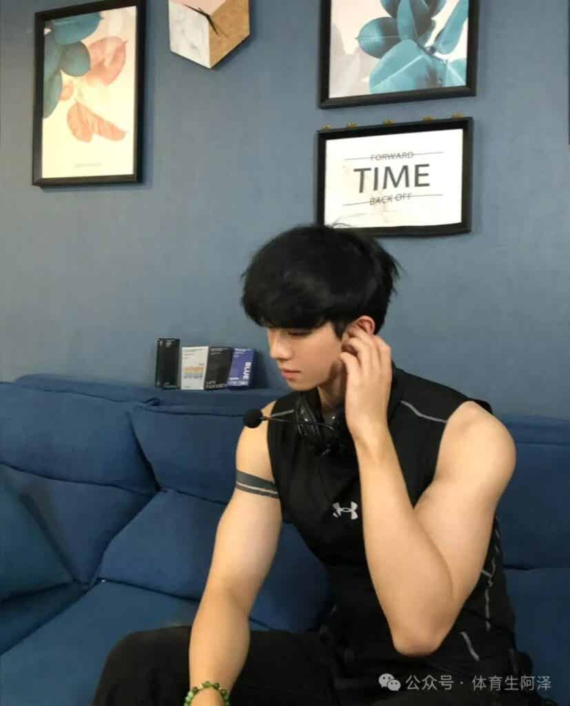 还有这个拍照姿势真的是超级的吸引阿泽啊!都知道阿泽喜欢胸肌喜欢腹肌更是喜欢体育生的腿啊!光是这个大腿阿泽都感觉瞬间迷住了哈哈哈哈。更别提这个奶奶的弟弟类型。要是在你身后支持你的话,那简直太爽了。